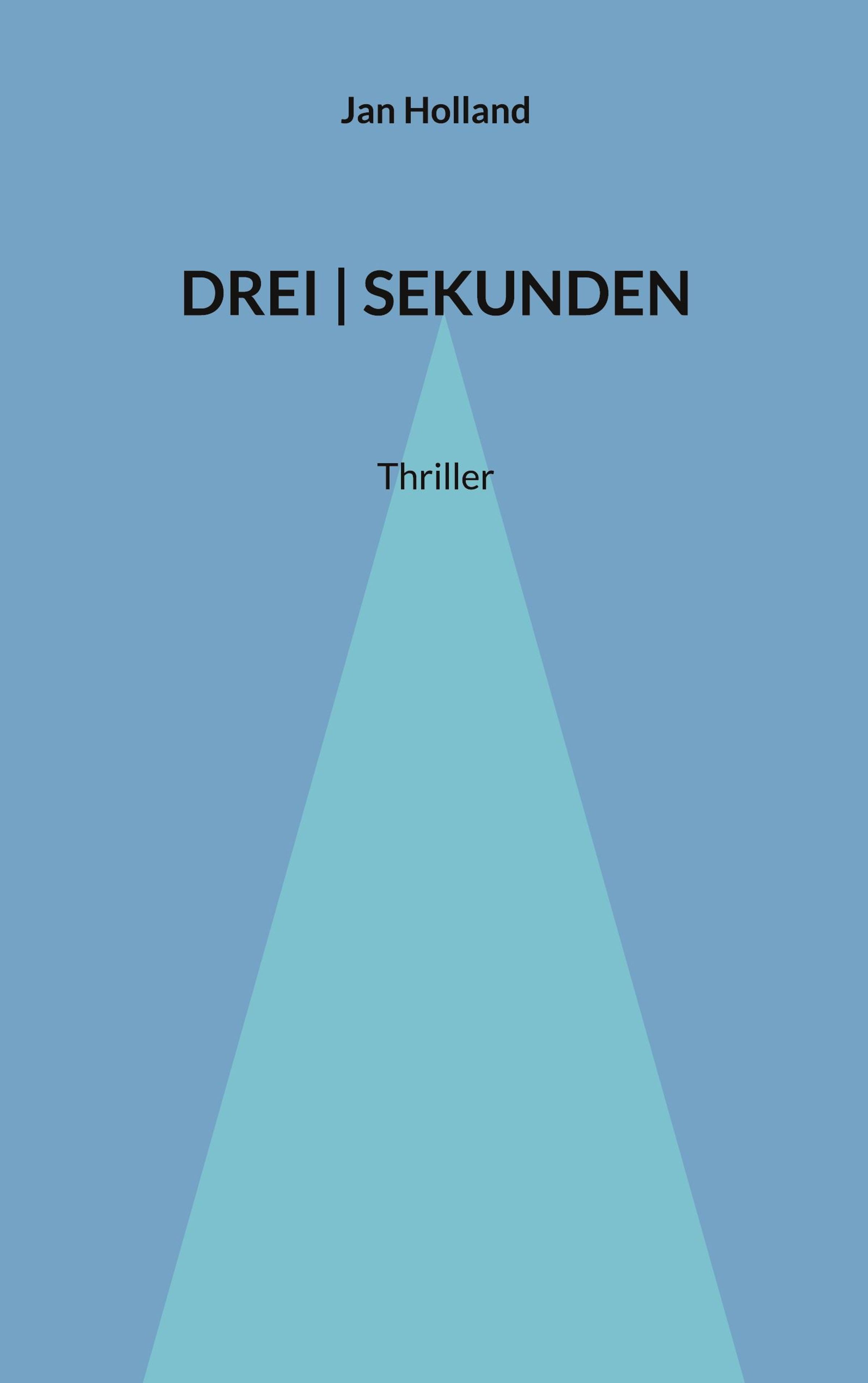Jan Holland, DREI SEKUNDEN, Thriller. Hellblaues Dreieck auf blauem Hintergrund., Buch