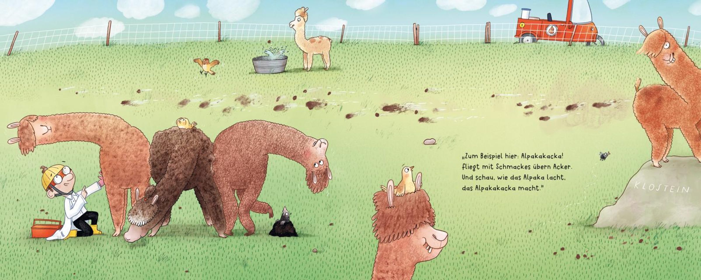 Alpakakacka, Faultierpuuh oder viereckige Wombat-Würfel - in diesem Bilderbuch dreht sich alles um das, was bei Tieren hinten rauskommt! Mit viel Humor und originellen Reimen nimmt Jan Kaiser kleine und große Leser: innen mit auf eine tierisch lustige Entdeckungstour. Die detailverliebten Illustrationen von Ina Hattenhauer laden zum Staunen, Schmunzeln und Weitererzählen ein. Ein Vorlesebuch, das Kinder ab 4 Jahren begeistert und die ganze Familie zum Lachen bringt - und ganz nebenbei spannende Fakten über die Tierwelt vermittelt.