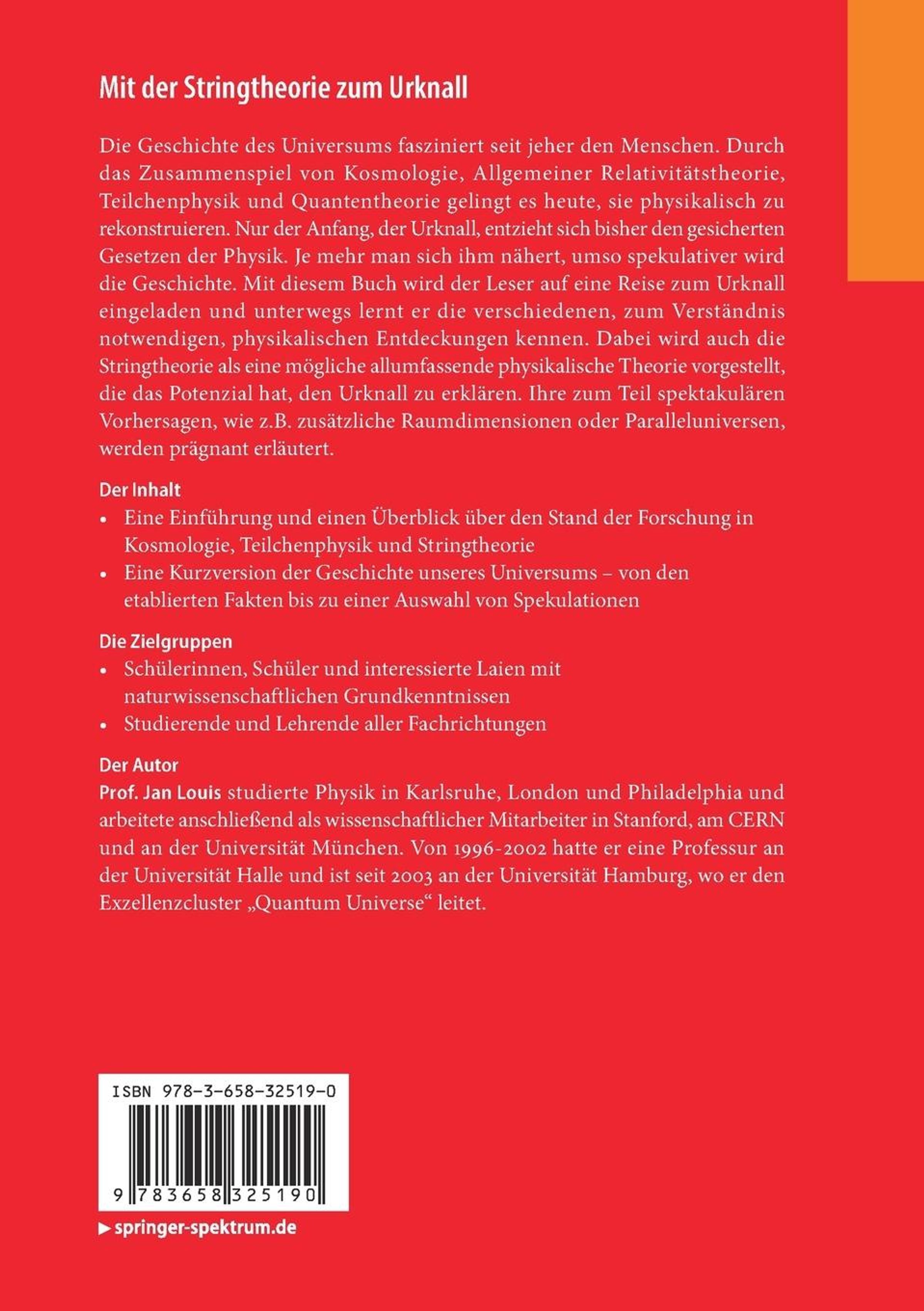 Die Geschichte des Universums fasziniert seit jeher den Menschen. Durch das Zusammenspiel von Kosmologie, Allgemeiner Relativitätstheorie, Teilchenphysik und Quantentheorie gelingt es heute, sie physikalisch zu rekonstruieren. Nur der Anfang, der Urknall, entzieht sich bisher den gesicherten Gesetzen der Physik. Je mehr man sich ihm nähert, umso spekulativer wird die Geschichte. Mit diesem Buch wird der Leser auf eine Reise zum Urknall eingeladen und unterwegs lernt er die verschiedenen, zum Verständnis notwendigen, physikalischen Entdeckungen kennen. Dabei wird auch die Stringtheorie als eine mögliche allumfassende physikalische Theorie vorgestellt, die das Potenzial hat, den Urknall zu erklären. Ihre zum Teil spektakulären Vorhersagen, wie z. B. zusätzliche Raumdimensionen oder Paralleluniversen, werden prägnant erläutert.