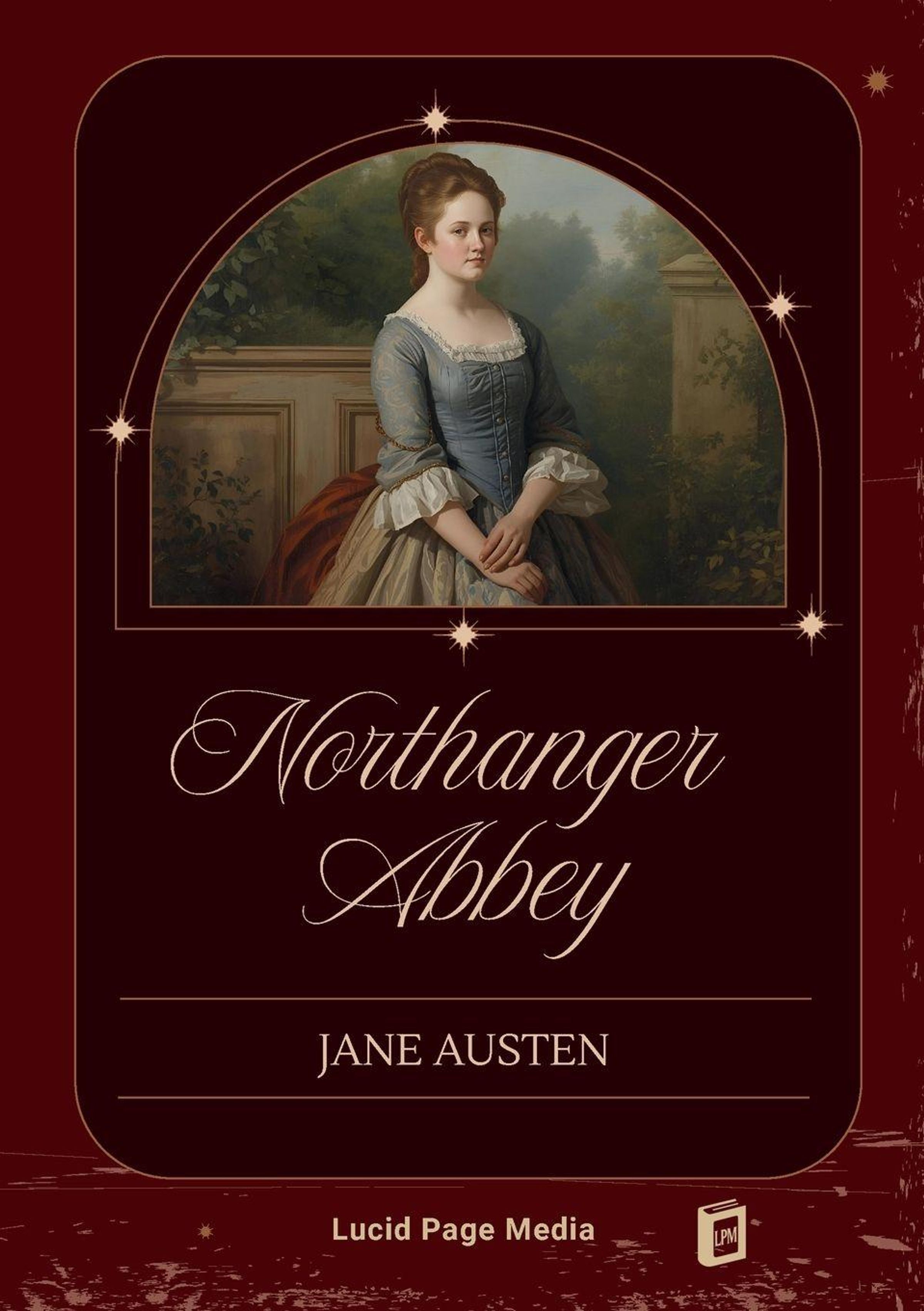"Northanger Abbey" von Jane Austen, Lucid Page Media. Illustration einer Frau in historischer Kleidung, umgeben von Pflanzen., Buch