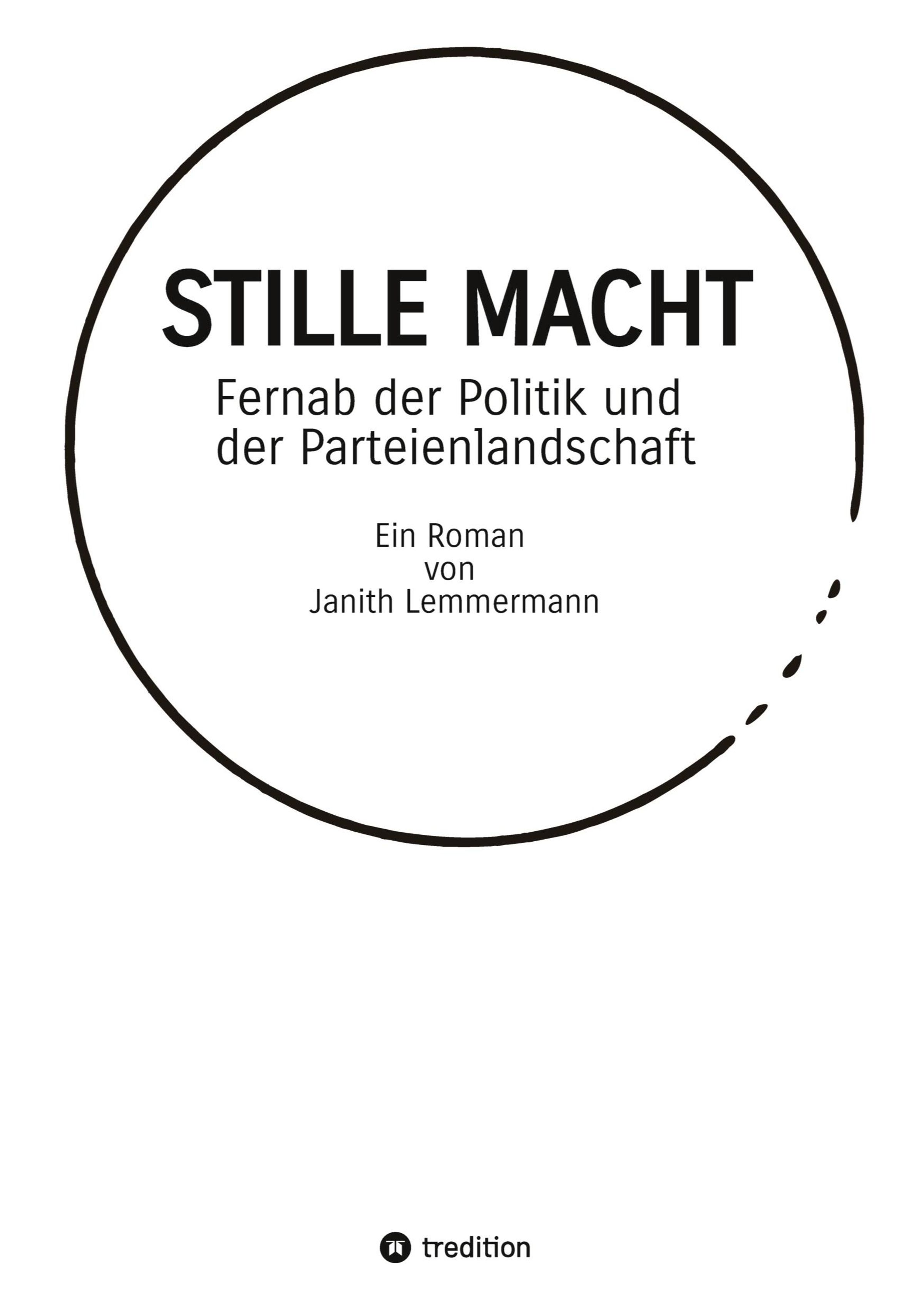 "STILLE MACHT. Fernab der Politik und der Parteienlandschaft. Ein Roman von Janith Lemmermann." Kreis mit Firmenlogo., Buch