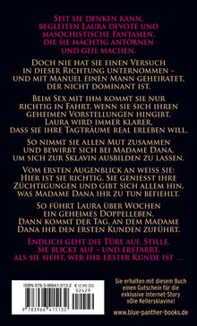 Seit sie denken kann, begleiten Laura devote und masochistische Fantasien, die sie mächtig antörnen und geil machen. Doch nie hat sie einen Versuch in dieser Richtung unternommen - und mit Manuel einen Mann geheiratet, der nicht dominant ist. Beim Sex mit ihm kommt sie nur richtig in Fahrt, wenn sie sich ihren geheimen Vorstellungen hingibt. Laura wird immer klarer, dass sie ihre Tagträume real erleben will. So nimmt sie allen Mut zusammen und bewirbt sich bei Madame Dana, um sich zur Sklavin ausbilden zu lassen. Vom ersten Augenblick an weiß sie: Hier ist sie richtig. Sie genießt ihre Züchtigungen und gibt sich allem hin, was Madame Dana ihr zu tun befiehlt. So führt Laura über Wochen ein geheimes Doppelleben.
