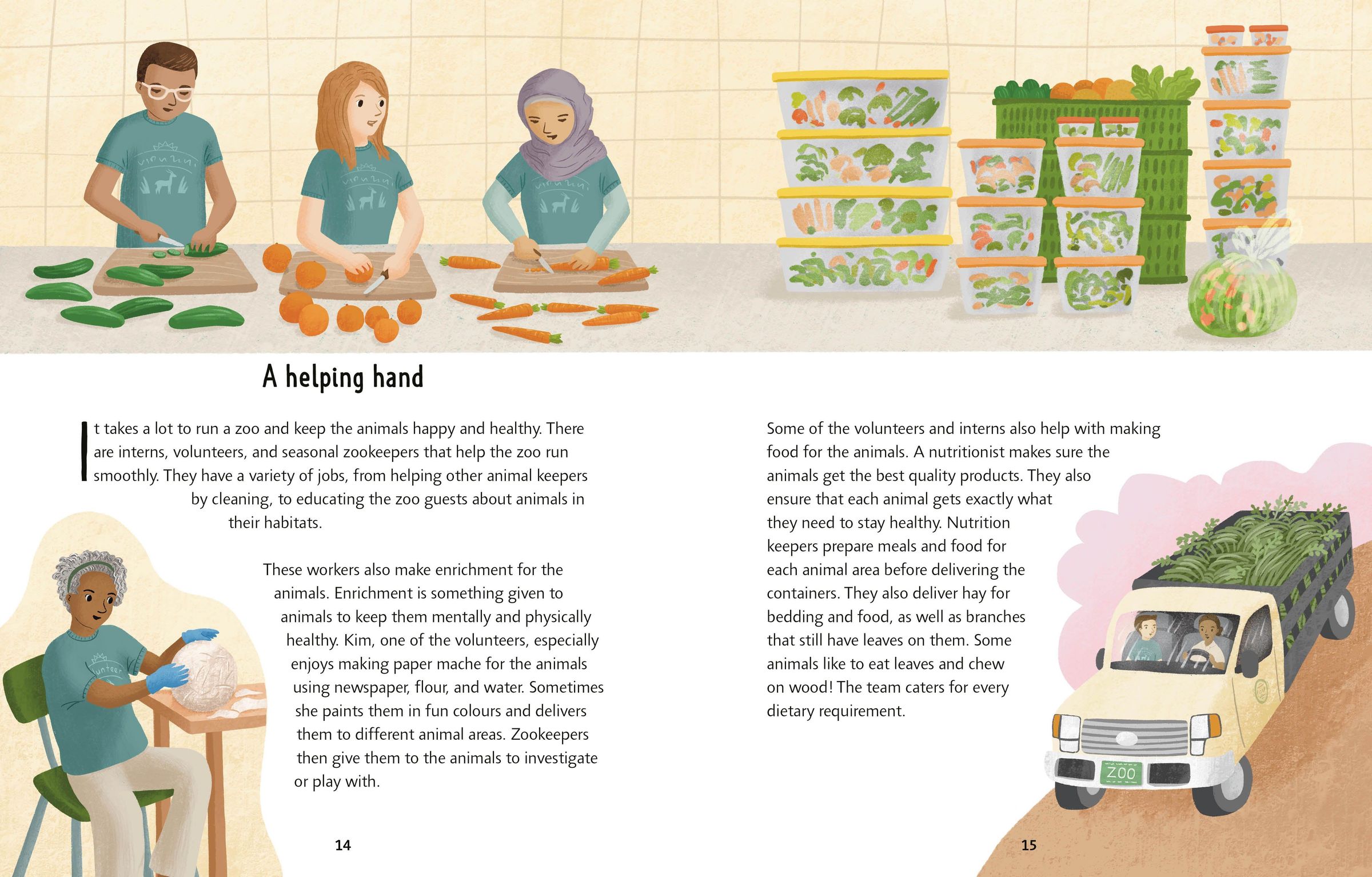 By the end of the book kids will have a newfound respect for all of the work that goes on to make every zoo experience memorable.