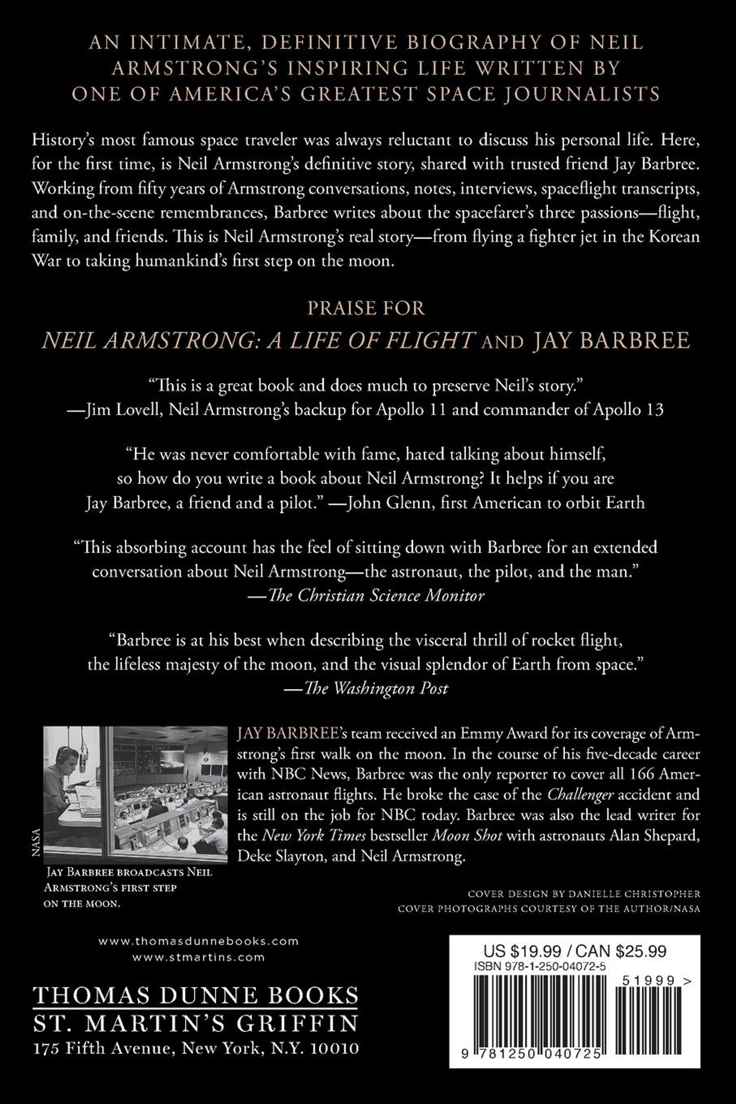 As the only reporter to have covered all 166 American astronaut flights and moon landings Jay knows these events intimately. Neil Armstrong himself said, "Barbree is history's most experienced space journalist. He is exceptionally well qualified to recall and write the events and emotions of our time." Through his friendship with Neil and his dedicated research, Barbree brings us the most accurate account of his friend's life of flight, the book he planned for twenty years.