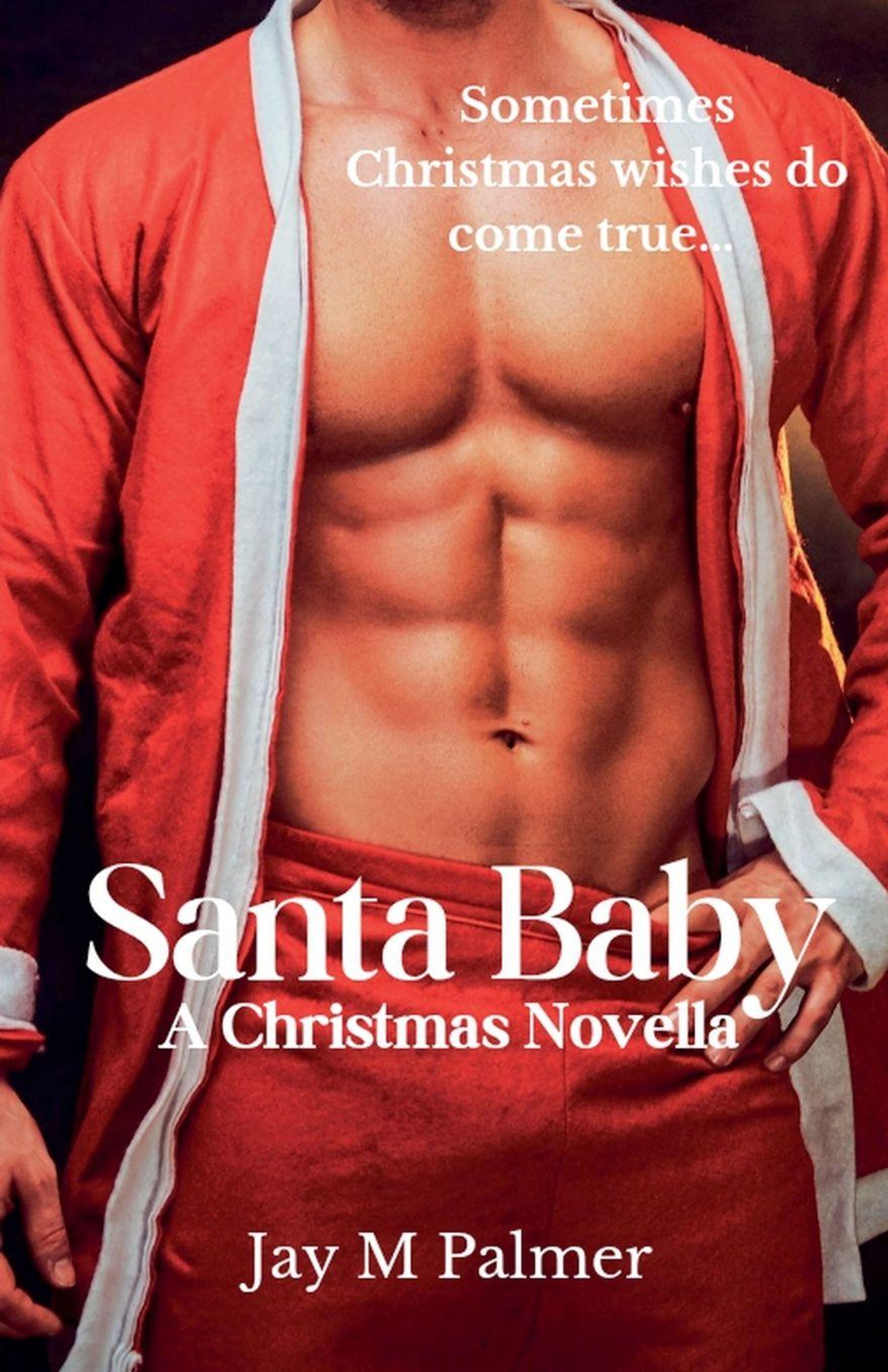 Text: „Sometimes Christmas wishes do come true… Santa Baby A Christmas Novella Jay M Palmer.“ Ein Mann in rotem Santa-Outfit zeigt seinen muskulösen Oberkörper., Buch