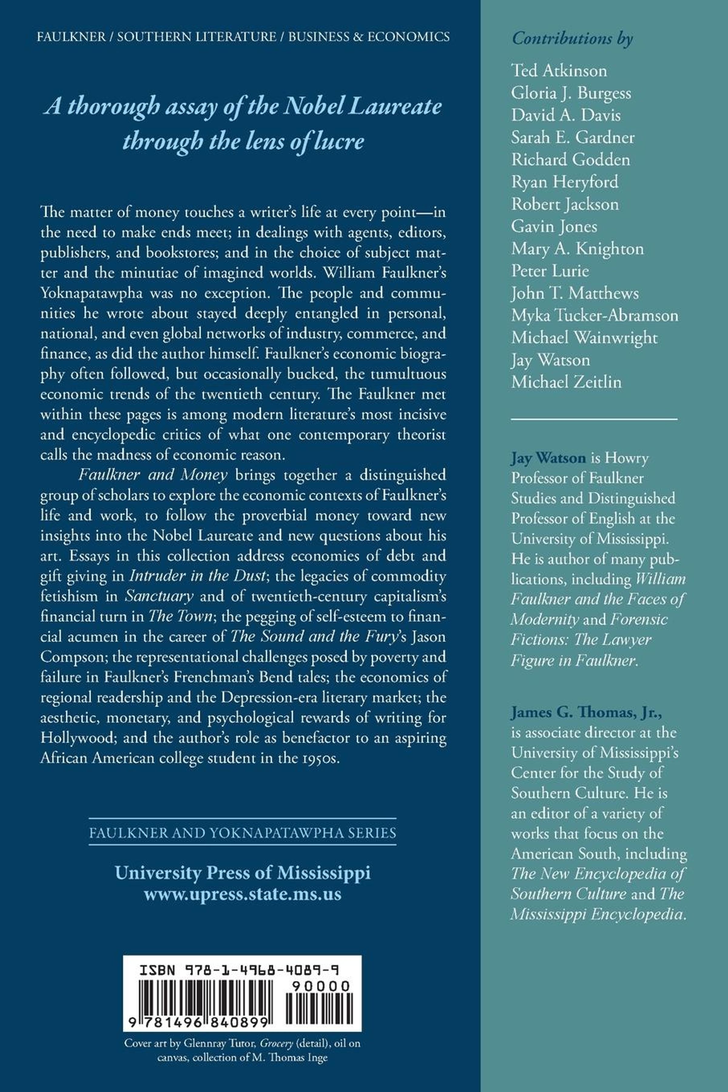 Contributions by Ted Atkinson, Gloria J. Burgess, David A. Davis, Sarah E. Gardner, Richard Godden, Ryan Heryford, Robert Jackson, Gavin Jones, Mary A. Knighton, Peter Lurie, John T. Matthews, Myka Tucker-Abramson, Michael Wainwright, Jay Watson, and Michael Zeitlin The matter of money touches a writer's life at every point--in the need to make ends meet; in dealings with agents, editors, publishers, and bookstores; and in the choice of subject matter and the minutiae of imagined worlds. William Faulkner's Yoknapatawpha was no exception. The people and communities he wrote about stayed deeply entangled in personal, national, and even global networks of industry, commerce, and finance, as did the author himself. Faulkner's economic biography often followed, but occasionally bucked, the tumultuous economic trends of the twentieth century. The Faulkner met within these pages is among modern literature's most incisive and encyclopedic critics of what one contemporary theorist calls the madness of economic reason. Faulkner and Money brings together a distinguished group of scholars to explore the economic contexts of Faulkner's life and work, to follow the proverbial money toward new insights into the Nobel Laureate and new questions about his art. Essays in this collection address economies of debt and gift giving in Intruder in the Dust; the legacies of commodity fetishism in Sanctuary and of twentieth-century capitalism's financial turn in The Town; the pegging of self-esteem to financial acumen in the career of The Sound and the Fury's Jason Compson; the representational challenges posed by poverty and failure in Faulkner's Frenchman's Bend tales; the economics of regional readership and the Depression-era literary market; the aesthetic, monetary, and psychological rewards of writing for Hollywood; and the author's role as benefactor to an aspiring African American college student in the 1950s.