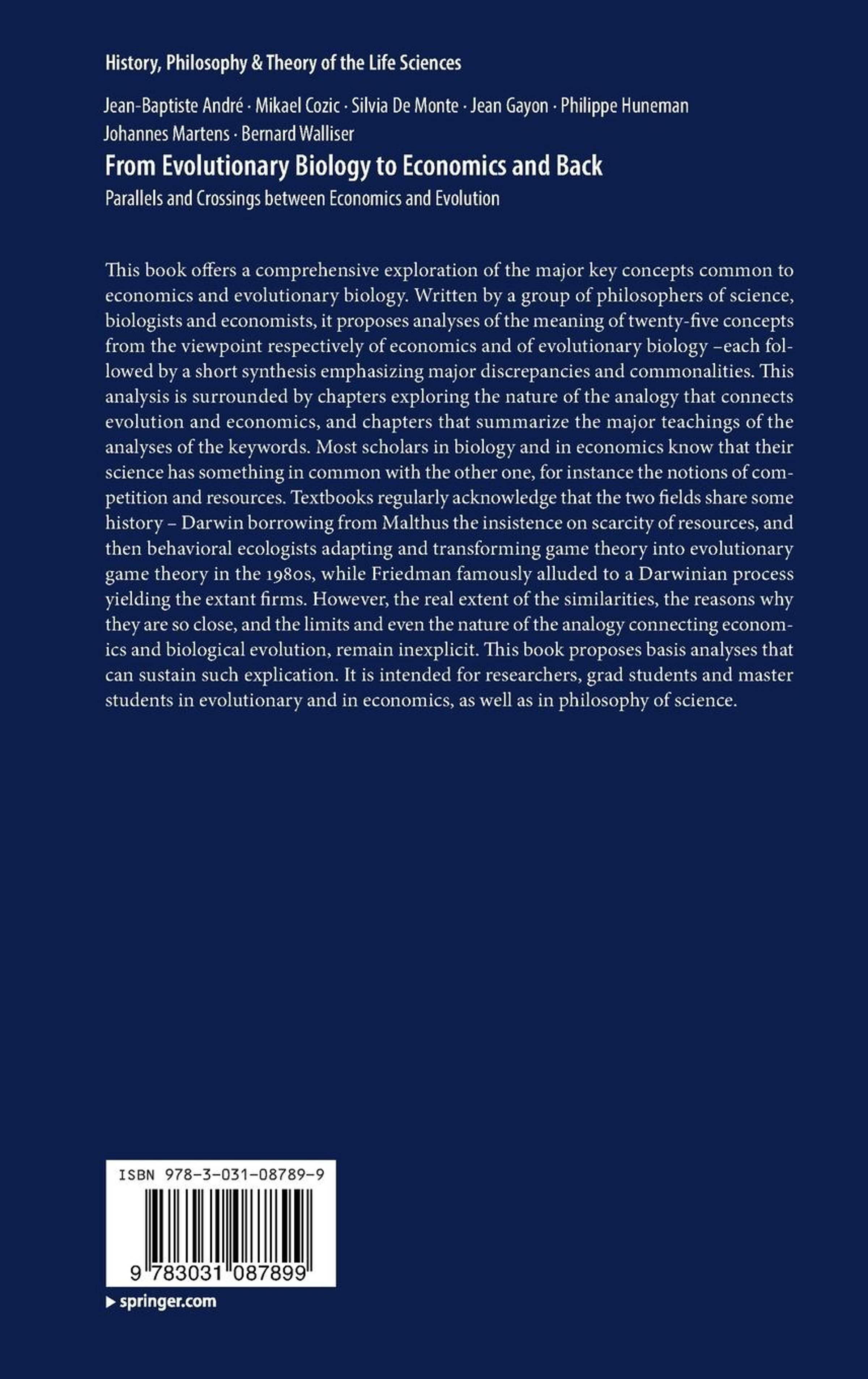 This book offers a comprehensive exploration of the major key concepts common to economics and evolutionary biology. Written by a group of philosophers of science, biologists and economists, it proposes analyses of the meaning of twenty-five concepts from the viewpoint respectively of economics and of evolutionary biology ¿each followed by a short synthesis emphasizing major discrepancies and commonalities. This analysis is surrounded by chapters exploring the nature of the analogy that connects evolution and economics, and chapters that summarize the major teachings of the analyses of the keywords. Most scholars in biology and in economics know that their science has something in common with the other one, for instance the notions of competition and resources. Textbooks regularly acknowledge that the two fields share some history ¿ Darwin borrowing from Malthus the insistence on scarcity of resources, and then behavioral ecologists adapting and transforming game theory into evolutionary game theory in the 1980s, while Friedman famously alluded to a Darwinian process yielding the extant firms. However, the real extent of the similarities, the reasons why they are so close, and the limits and even the nature of the analogy connecting economics and biological evolution, remain inexplicit. This book proposes basis analyses that can sustain such explication. It is intended for researchers, grad students and master students in evolutionary and in economics, as well as in philosophy of science.