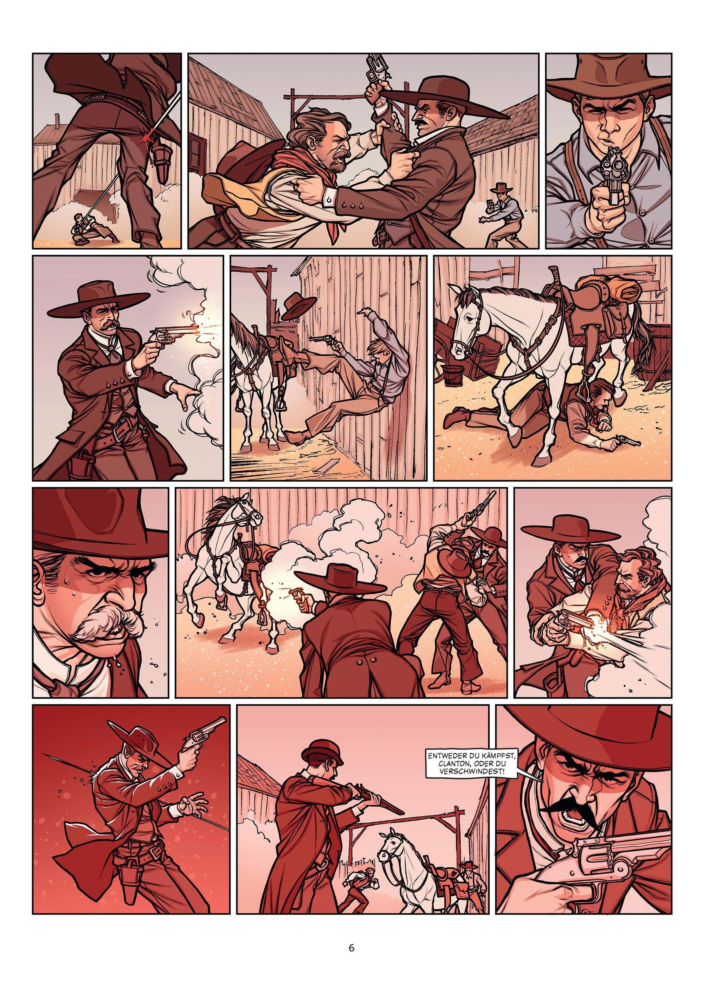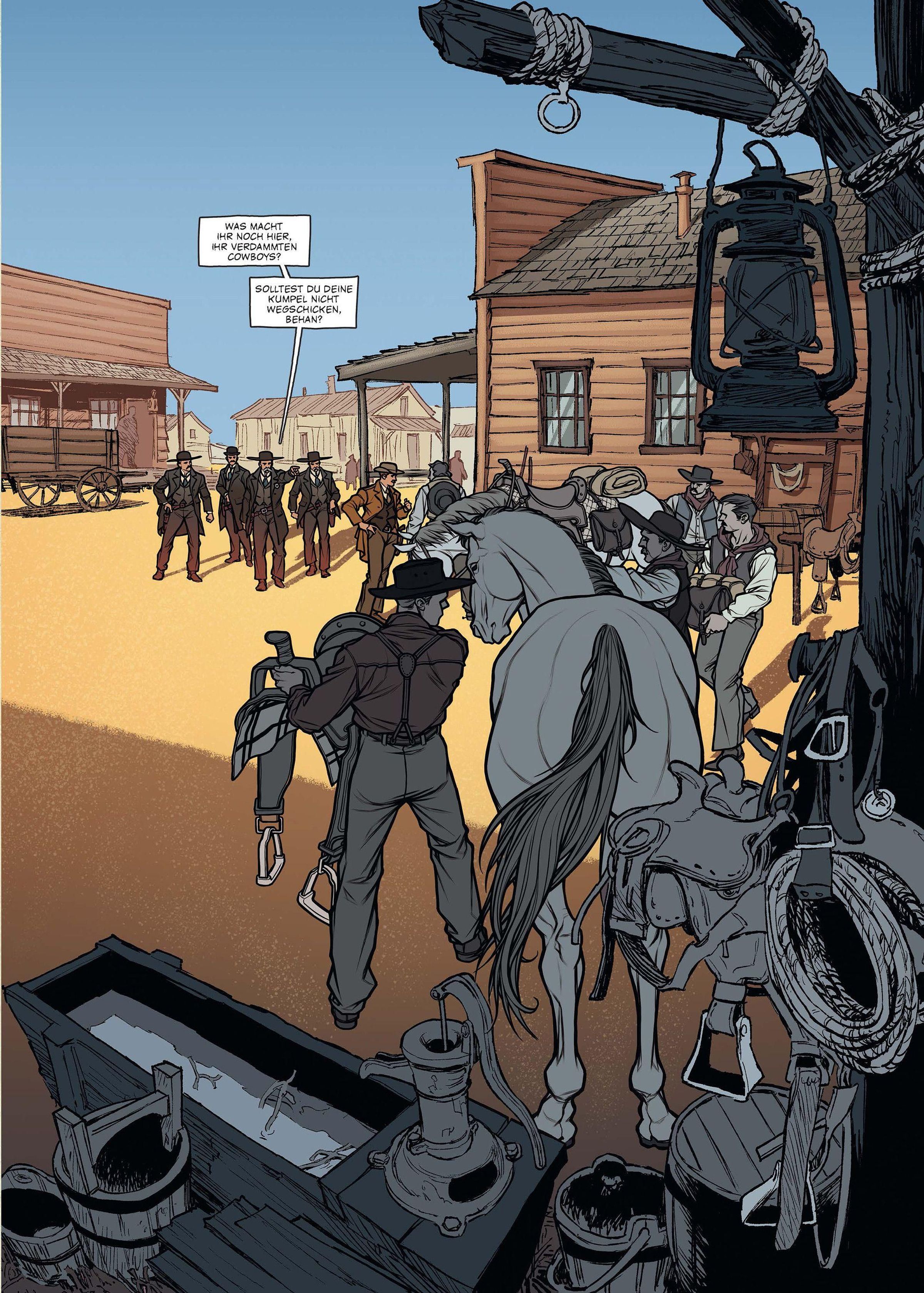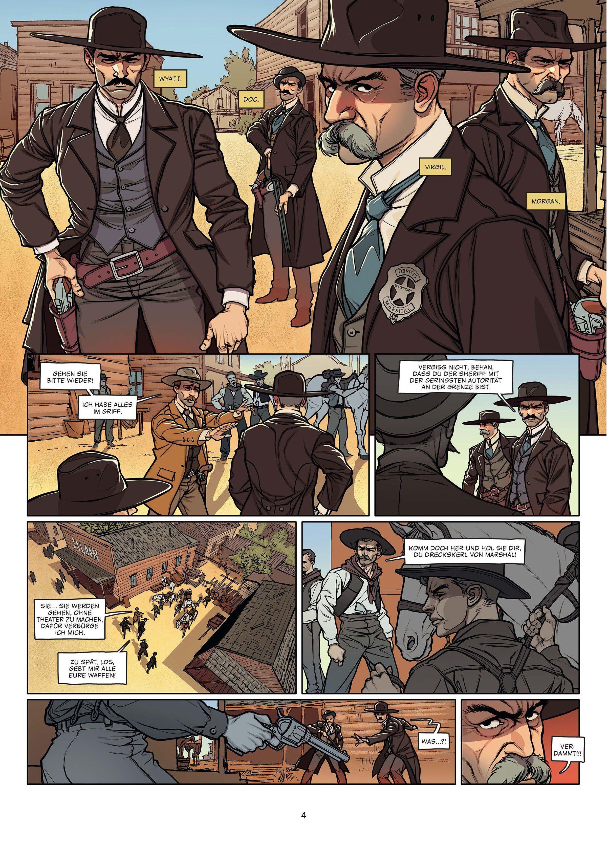 Arizona, 1881. Die Eroberung des Wilden Westens ist in vollem Gange. Widersprüchlichste Einflüsse formen die junge Nation: das Streben nach Freiheit, der Wille zur Expansion, die Gier nach Reichtum und der Geist des Puritanismus - in den Weiten Nordamerikas scheint nichts unmöglich! In der Kleinstadt Tombstone kondensieren sie alle zu einer erbitterten Feindschaft zwischen den Gebrüdern Earp, deren Rechtschaffenheit mehr als fragwürdig ist, und der verbrecherischen Clanton-McLaury-Gang. Nach zahlreichen Provokationen findet der Streit am 26. Oktober seinen Höhepunkt in der berühmten Schießerei am O. K. Corral. Viele Fakten dieses wohl bekanntesten Feuergefechts des Wilden Westens werden für immer im Nebel der Geschichte verborgen bleiben, aber was wir wissen, wird in dieser Graphic Novel offengelegt.