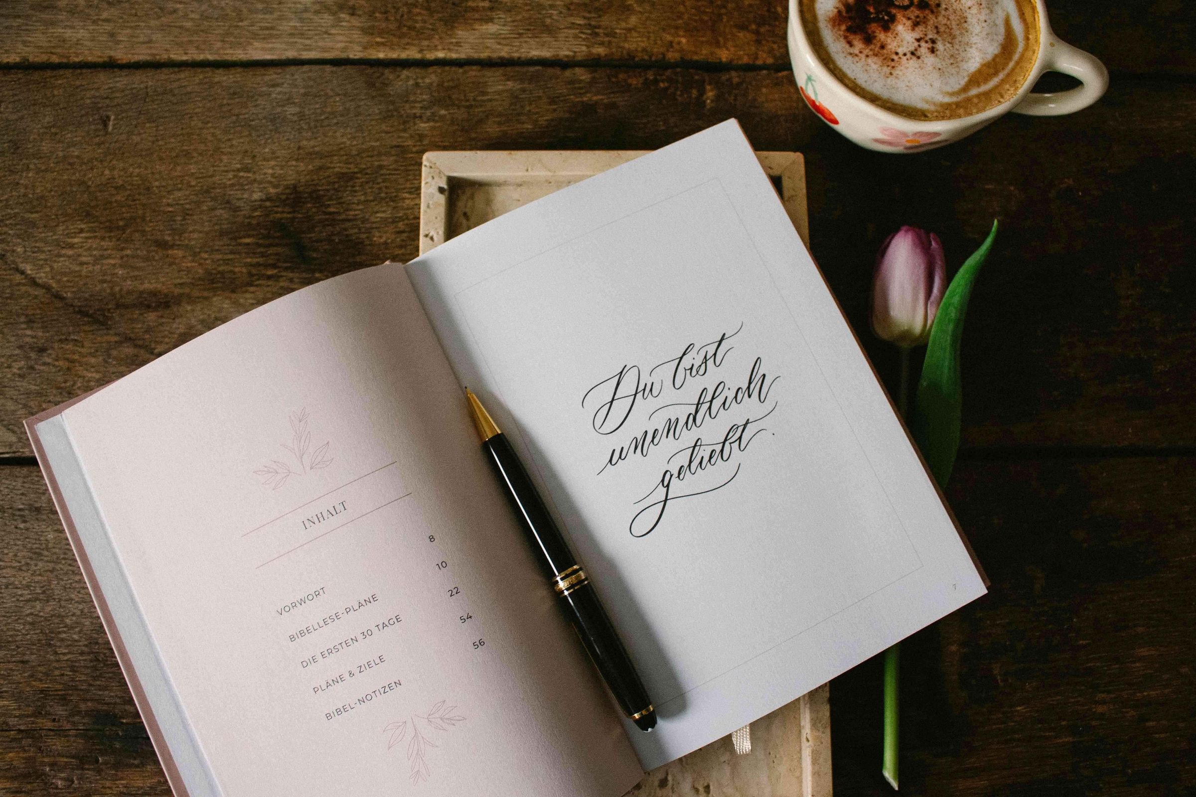 Mit inspirierenden Fragen, übersichtlichen Bibelleseplänen und kunstvoll kalligrafierten Bibelversen.