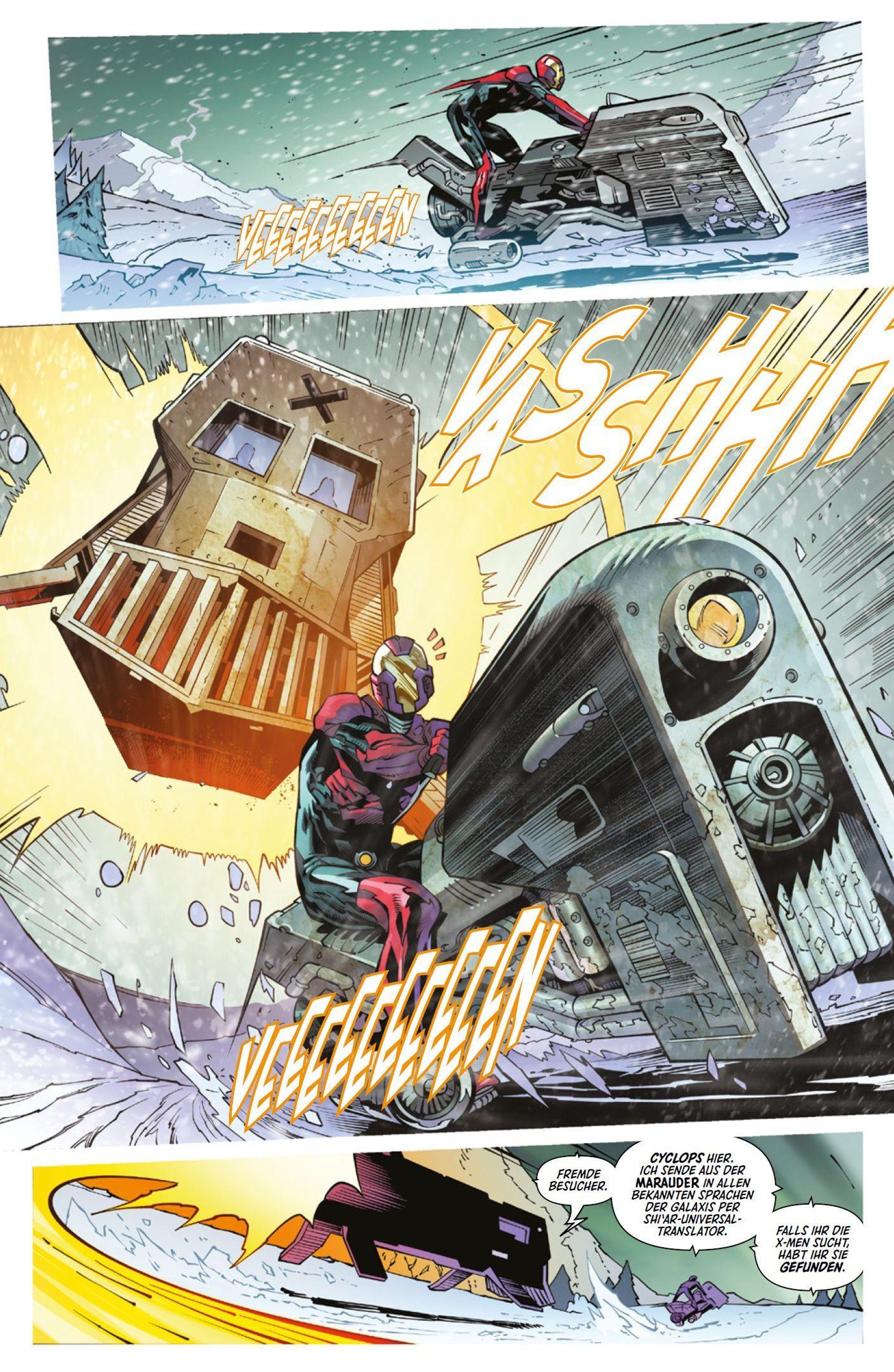 HELDEN DES NORDENS Als ein Besucher aus dem All vor der Tür der X-Men auftaucht, wittert Cyclops Gefahr. Aber die Befürchtung weicht inniger Freude, als sich der vermeintliche Fremde als ein enger Vertrauter entpuppt. Wie es scheint, befindet sich der selten gesehene Gast auf der Flucht vor einer Horde intergalaktischer Kopfgeldjäger. Als sich jedoch der wahre Grund für seine Ankunft auf der Erde herausstellt, bricht in Alaska die Hölle los. Wie wird Kanada auf das Inferno an seiner Grenze reagieren? Jed MacKay, Ryan Stegman und Netho Diaz wandeln auf den Spuren legendärer X-Men-Zeiten, ohne zurückzublicken oder Luft zu holen.