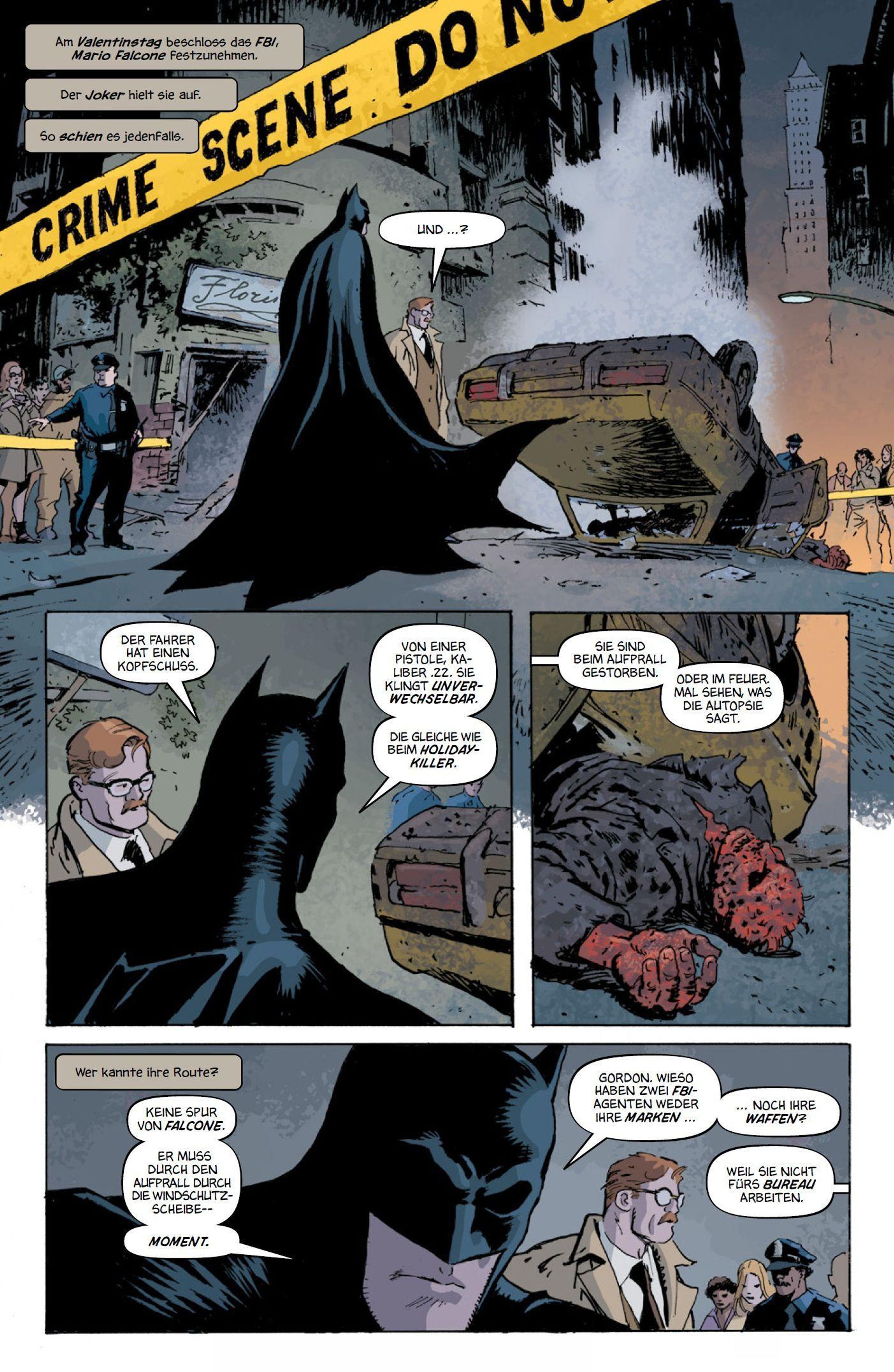 DAS GROSSE FINALE! In Gotham geht es an den Feiertagen wieder mal mörderisch zu! Nicht nur Batman und Robin, sondern auch Jim Gordon, die Polizei und FBI-Agentin Amanda Waller suchen Mafia-Prinz Mario Falcone, der vielleicht oder vielleicht auch nicht der neue Holiday-Mörder ist. Außerdem muss Batman Mr. Freeze vor den maskierten Killern retten, die Gotham unsicher machen. Two-Face und Gilda Dent geraten aneinander, während Catwoman und Poison Ivy allen anderen einen Schritt voraus sind.