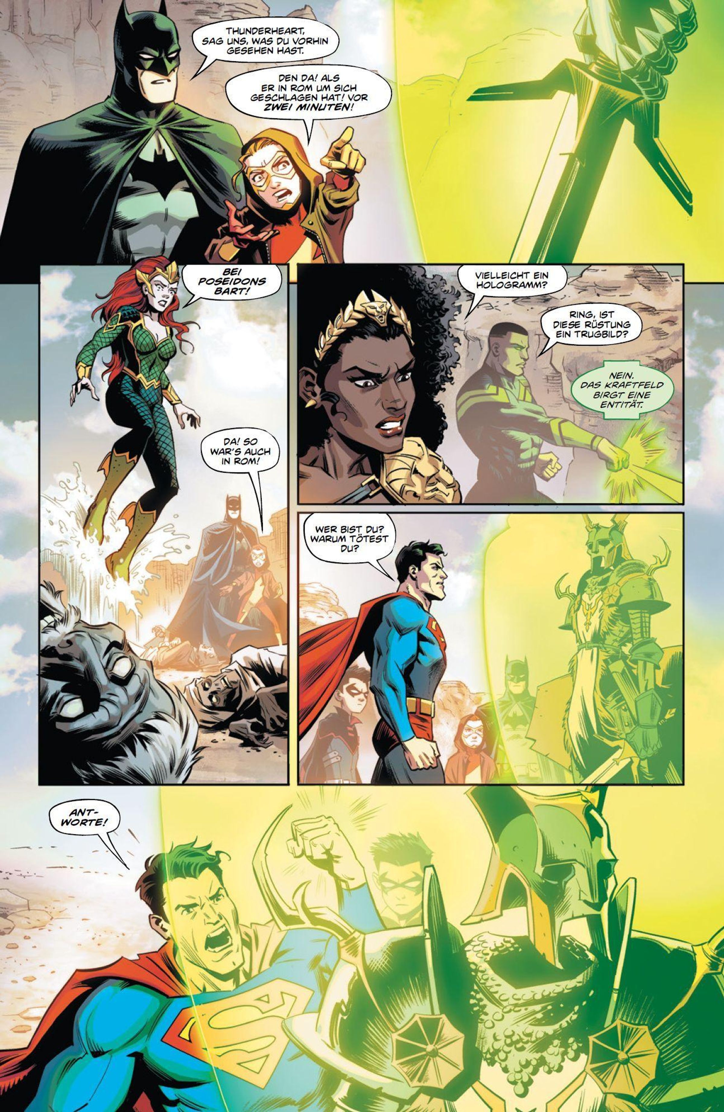 IHR RITTERLEIN KOMMET ... Ein unheimliches Wesen in einer alten Ritterrüstung saugt Menschen das Leben aus und macht selbst vor Superhelden nicht halt! Batman, Superman, Green Lantern und viele mehr wollen ihn aufhalten und landen bei ihrer Jagd nach dem mysteriösen Mörder in einem düsteren Reich. Unterdessen tun sich Robin und die Zauberin Zatanna mit Santa Claus zusammen, um herauszufinden, was es mit dem Ritter auf sich hat.