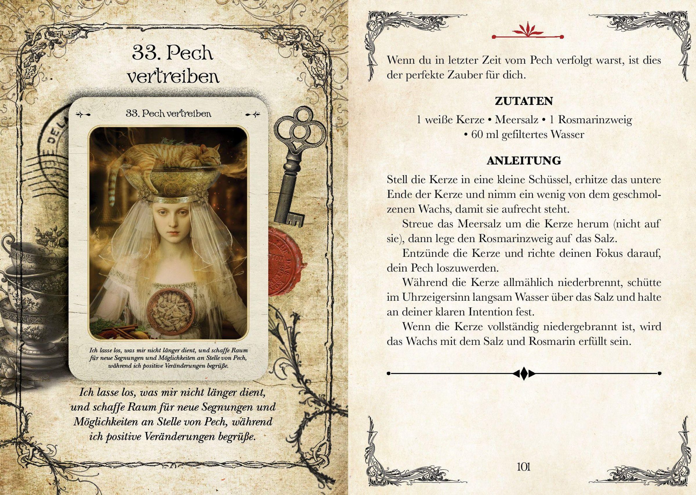 Jede der 36 von der Ausnahmekünstlerin Jena Dellagrottalia liebevoll gestalteten Karten enthält eine magische Formel, um zu manifestieren, sich zu schützen, zu fokussieren oder wieder in Balance zu kommen. Zudem wird ein im Begleitbuch genau beschriebenes Rezept enthüllt, dass du in deiner eigenen Küche mit leicht erhältlichen Zutaten brauen kannst, um Trost, Freude und Heilung zu finden.