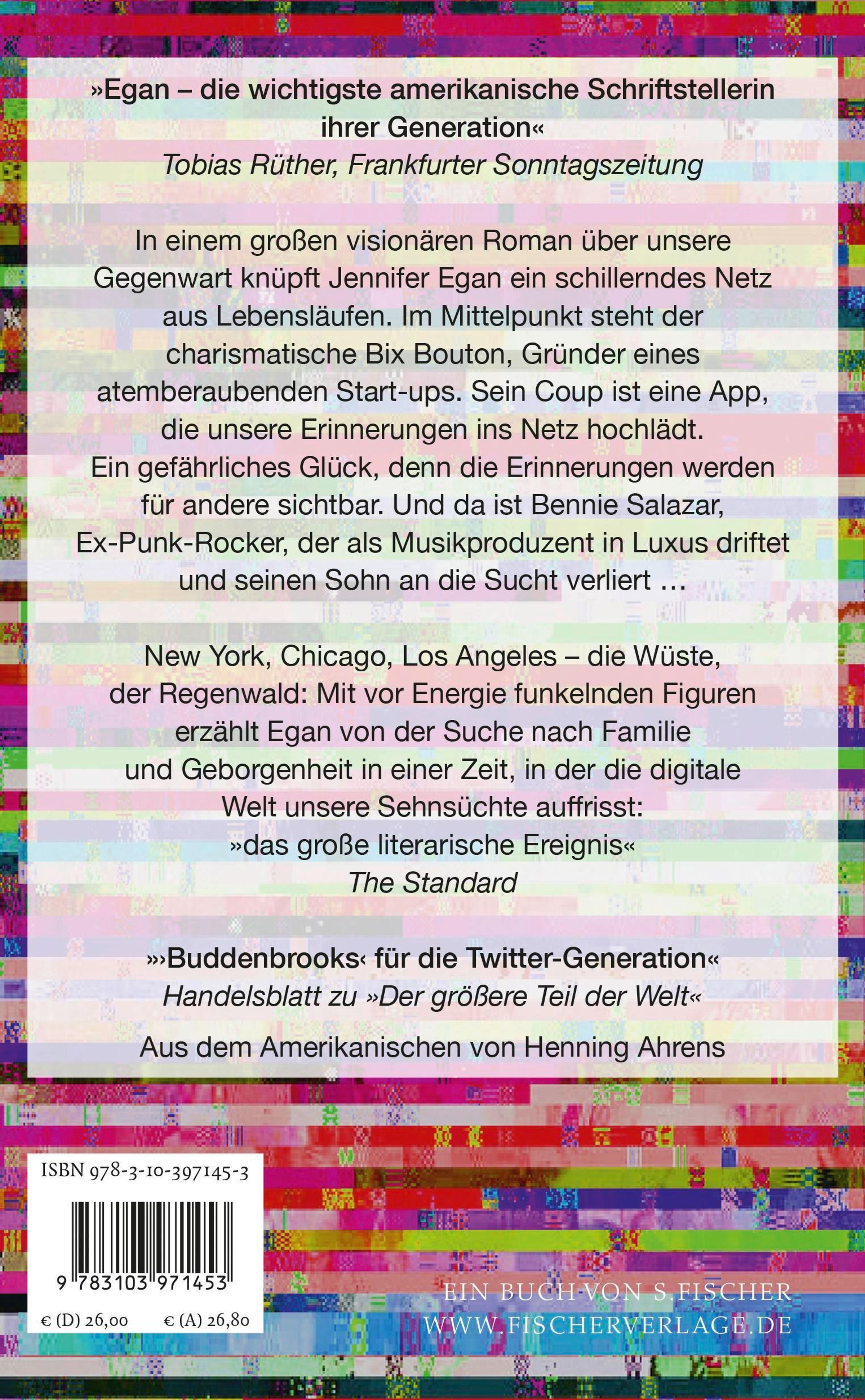 New York, Chicago, Los Angeles - die Wüste, der Regenwald: Mit vor Energie funkelnden Figuren erzählt Egan von der Suche nach Familie und Geborgenheit in einer Zeit, in der die digitale Welt unsere Sehnsüchte auffrisst.