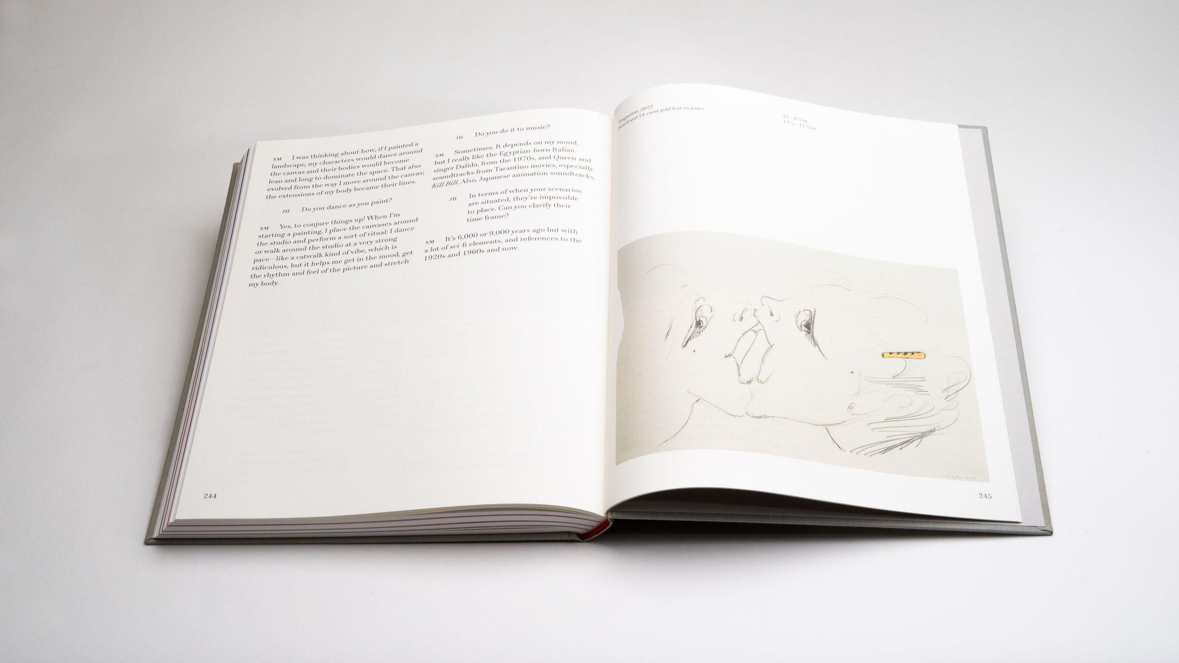 In Sisterly Affections, London-based artist Sofia Mitsola (b. 1992) constructs a vivid pictorial world where myth, desire, and painting converge on contemporary terms. Her women figures-confident, theatrical, and self-possessed-inhabit spaces that resist fixed narrative or moral framing. Mitsola approaches female eroticism not as spectacle but as agency, informed by classical imagery and reworked through a contemporary feminist lens. Bringing together paintings, drawings, and watercolors, the catalogue is accompanied by a text by Alyce Mahon and an interview by Jennifer Higgie, offering a nuanced portrait of an artist redefining the terms of sensual representation today.