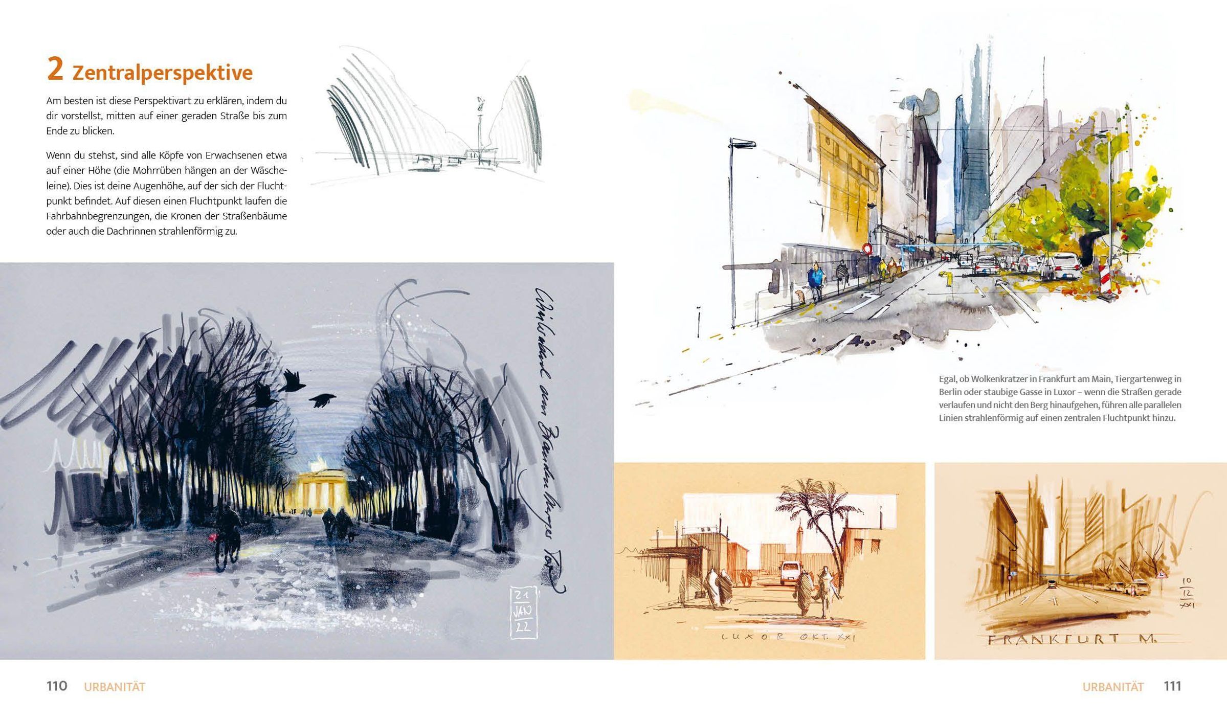 Für Out- und Indoor-Zeichner*innen: das umfassende Zeichenbuch des bekannten Urban Sketchers Jens Hübner lässt keine Zeichenwünsche offen.