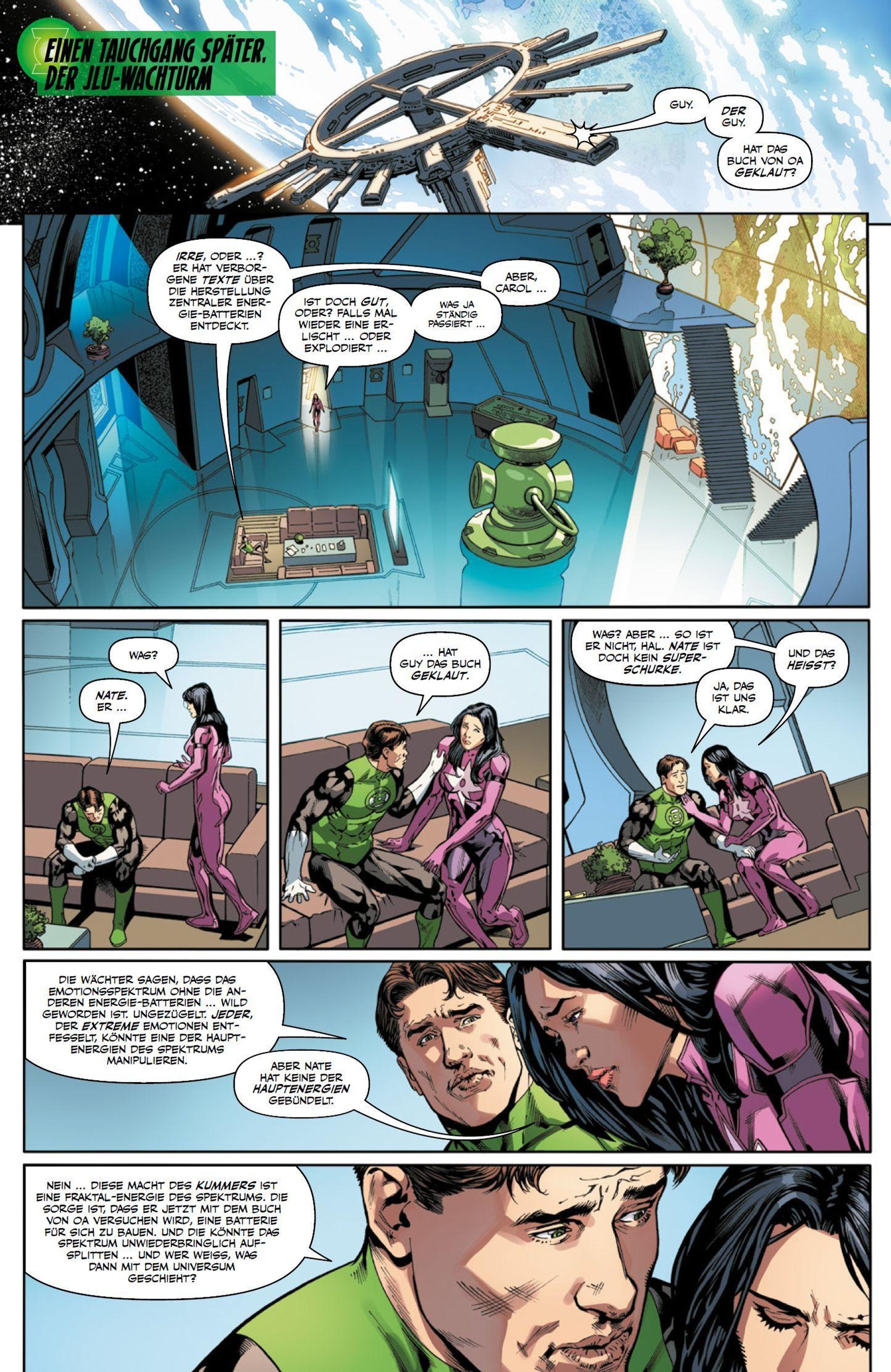 VOM HIMMEL DURCH DIE WELT ZUR HÖLLE! Das Green Lantern Corps kämpft an zwei Fronten gegen die wachsende Bedrohung der Fraktal-Lanterns! Kyle Rayner rekrutiert ungewöhnliche Verbündete für eine gefährliche Mission, die die Green Lantern bis an die Grenzen des Quellenalls führen wird. Und Hal Jordan wagt sich in den Schlund der wahrhaftigen Hölle vor, um ein Objekt zu sichern, das von entscheidender Bedeutung sein könnte. Dämonen und Teufel sind dort jedoch das kleinste seiner Probleme, wie sich zeigen wird. Und die Sorrow Lantern gewinnt indessen einen mächtigen Verbündeten ...