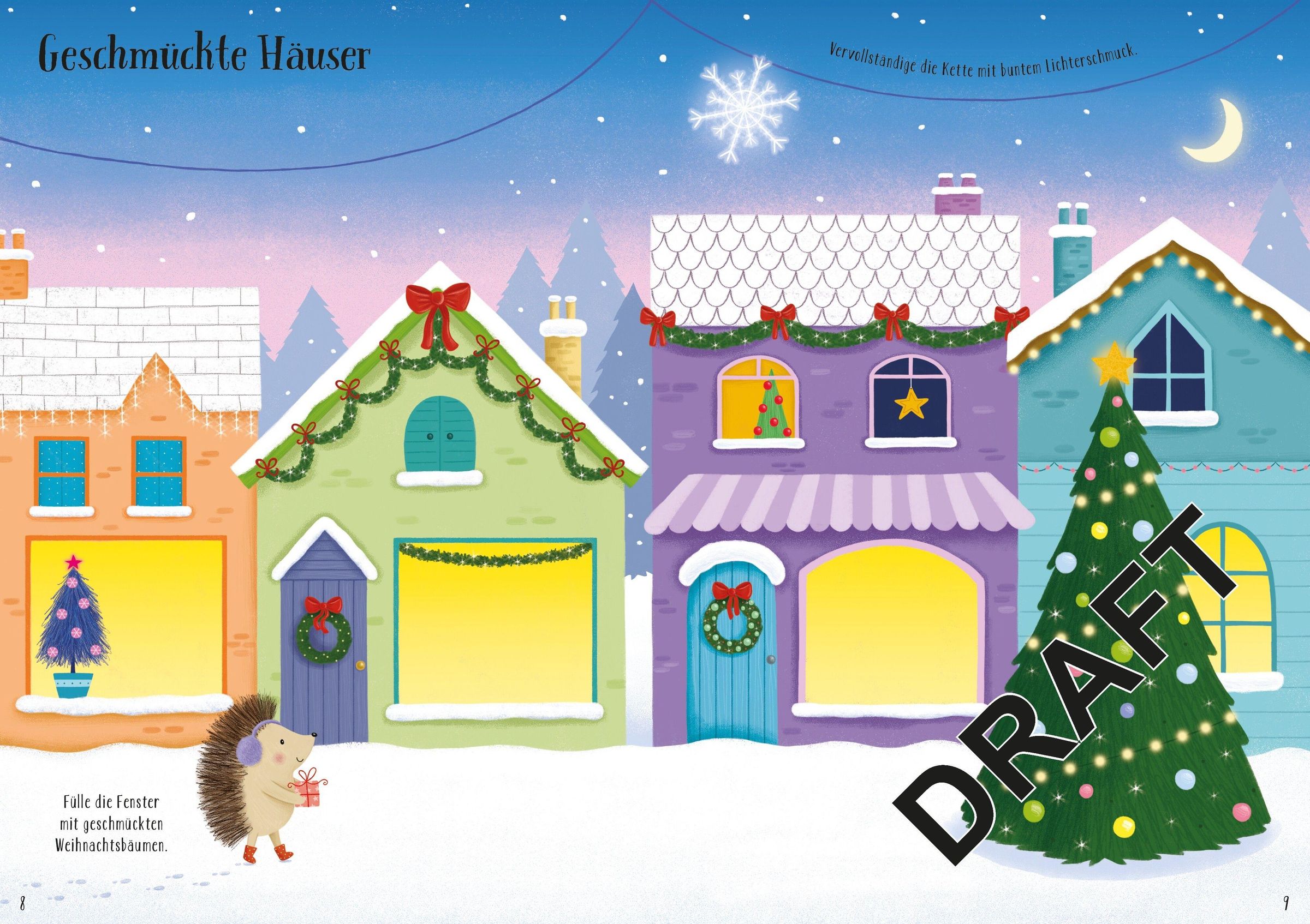 . Weihnachtliche Szenen vervollständigen: Christbaum schmücken, Winter in der Stadt u. v. m.