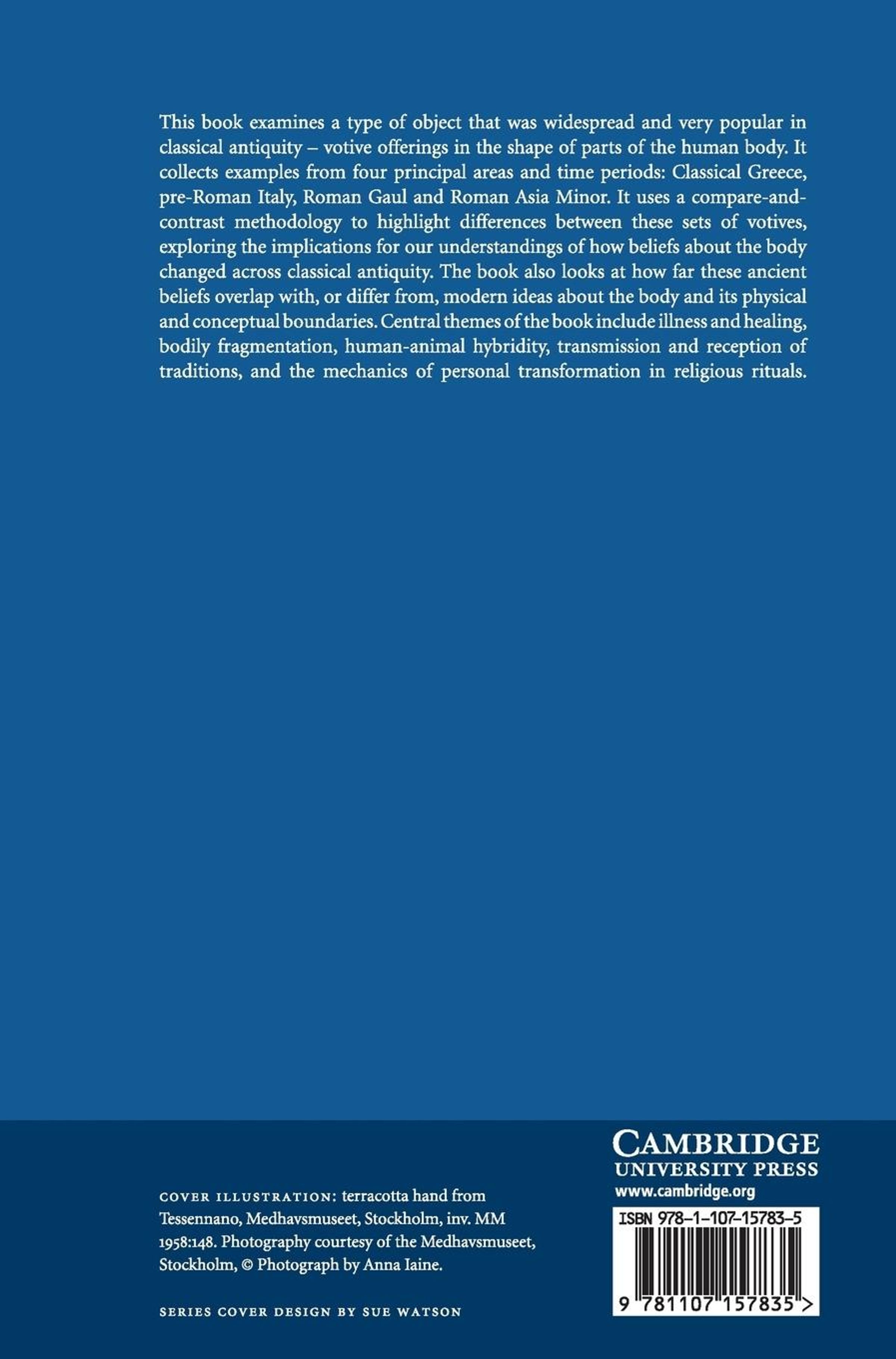This book examines a type of object that was widespread and very popular in classical antiquity - votive offerings in the shape of parts of the human body. It collects examples from four principal areas and time periods: Classical Greece, pre-Roman Italy, Roman Gaul and Roman Asia Minor. It uses a compare-and-contrast methodology to highlight differences between these sets of votives, exploring the implications for our understandings of how beliefs about the body changed across classical antiquity. The book also looks at how far these ancient beliefs overlap with, or differ from, modern ideas about the body and its physical and conceptual boundaries. Central themes of the book include illness and healing, bodily fragmentation, human-animal hybridity, transmission and reception of traditions, and the mechanics of personal transformation in religious rituals.