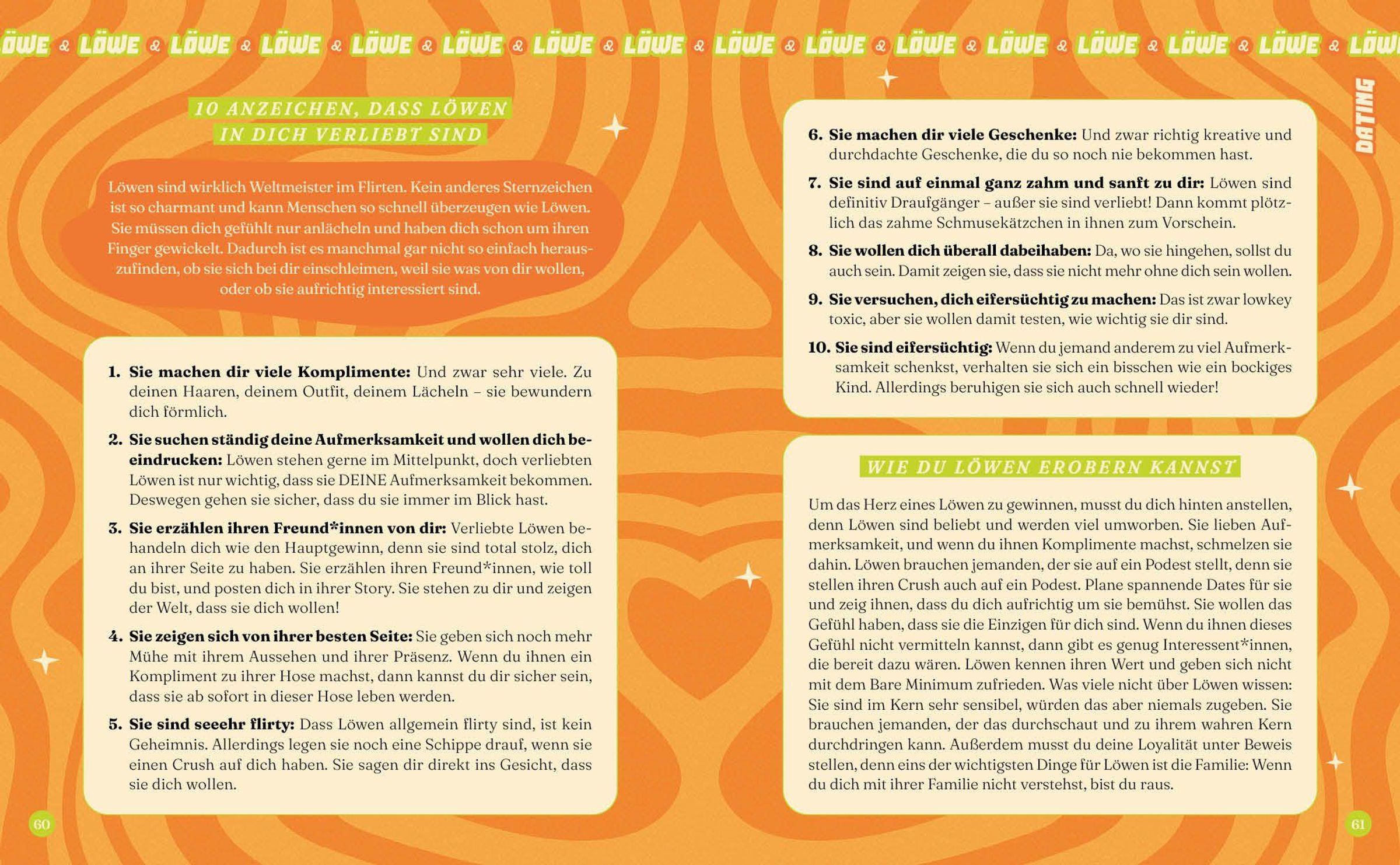 Dieser unterhaltsame Dating-Guide nimmt dich mit in die Welt der Sternzeichen und ist dabei so viel mehr als nur ein Horoskop. Egal, ob du auf der Suche nach Liebe, echter Freundschaft oder einfach nur nach ein bisschen Astro-Entertainment bist: Hier findest du Antworten auf Fragen, die du dir vielleicht nie laut gestellt hast - und Tipps, die dein Dating- und Liebesleben auf ein neues Level heben.