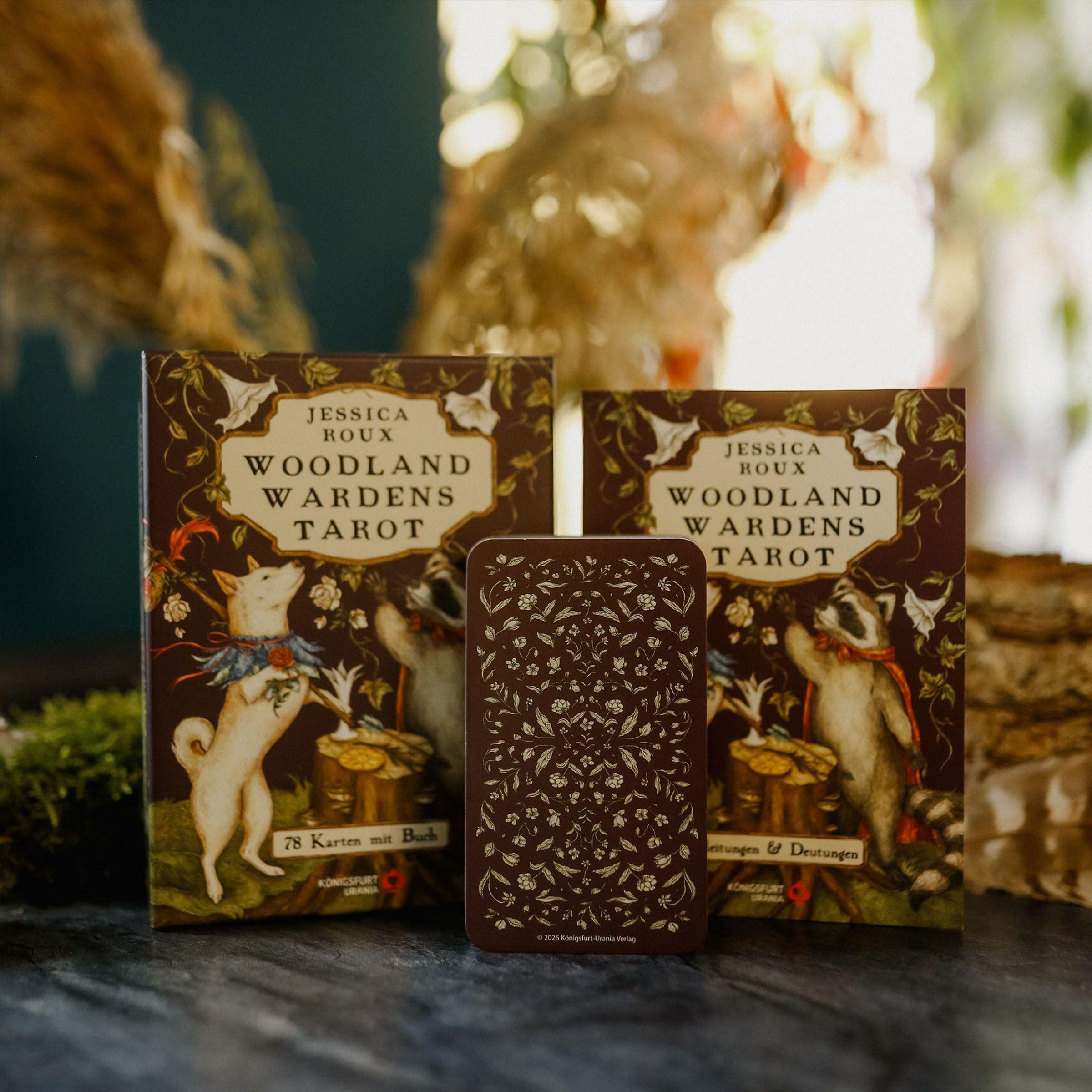In diesem zauberhaften Kartendeck verschmelzen die Weisheit der Tiere und die stille Kraft der Pflanzen zu einer tief berührenden Reise. Inspiriert von der klassischen Symbolik des Waite-Smith-Tarots begleiten dich die Waldbewohner als Hüter uralter Erkenntnisse liebevoll durch die Große und Kleine Arkana. Ob als eigenständiges Set oder in Verbindung mit dem beliebten Woodland Wardens Orakel von Jessica Roux: Dieses Tarot ist passend für alle, die die Sprache der Natur, die Magie der Mythen und die Tiefe der inneren Welt mit einem Charme von Nostalgie suchen. Inhalt: Set mit Booklet, Stülpdeckelschachtel mit Spotlack, Hebebändchen und 78 Karten