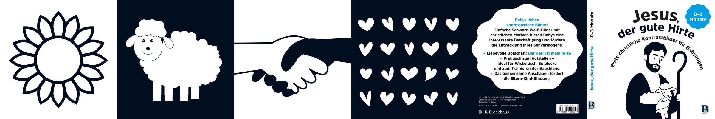 "Jesus, der gute Hirte", "Erste christliche Kontrastbilder für Babyaugen", "0-3 Monate". Illustration: Mann mit Stab und Lamm., Buch
