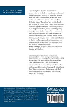 "Visualising Lost Theatres argues that once a theatre is demolished, its theatrical, social, and cultural worlds are also at risk. Yet venues are living systems, not than passive containers of performance. A visualisation-or virtual reconstruction-can provide the visual and immersive feel of a venue, revealing performance logistics for actors and audience. We examine virtual models of the Rose Theatre in 1590s London where Christopher Marlowe's plays were performed; Komediehuset in Bergen, Norway, where Henrik Ibsen learned how to be a playwright in the 1850s; the Queen's Theatre, built in 1841, which represents an empire-building movement in Adelaide, South Australia; Cantonese opera touring in circus tents in Australia's goldfields from the 1850s; and the Stardust showroom in 1950s Las Vegas which shaped commercial theatre for a tourist audience. Each reveals new knowledge about the venues themselves, theatrical form, and performer-audience relationships. The book overall offers a methodology for this new technology in theatre studies: it illustrates how the virtual models can, in conjunction with performers and designers, be performance laboratories to test out the written archive"--