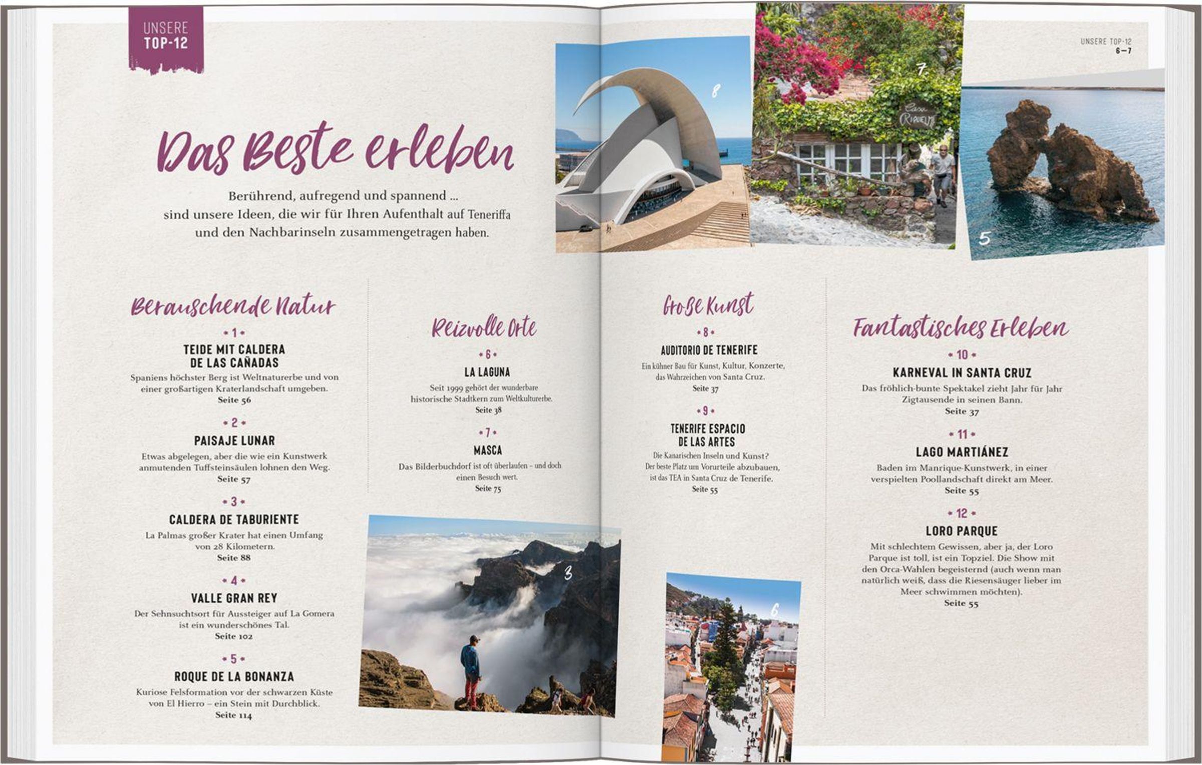 Mit dem DUMONT Bildatlas beginnt der Urlaub mit der Vorfreude: Großformatige Fotos und spannende Reportagen entführen Sie schon von zu Hause aus auf die sonnenverwöhnten Kanaren. Für einen erlebnisreichen, entspannten Urlaub finden Sie am Ende eines jeden der sechs Reisekapitel eine übersichtliche Zusammenfassung der wichtigsten Attraktionen und Aktivitäten, Restaurants und Hotels - einfach das Beste herauspicken! Übersichtliche Karten und ein abschließendes Servicekapitel mit allen wichtigen Reiseinformationen helfen Ihnen bei der stressfreien Urlaubsplanung. So können Sie Ihre Zeit auf Teneriffa und ihren Inselschwestern von Anfang an genießen - und im Nachhinein in schönen Erinnerungen schwelgen!
