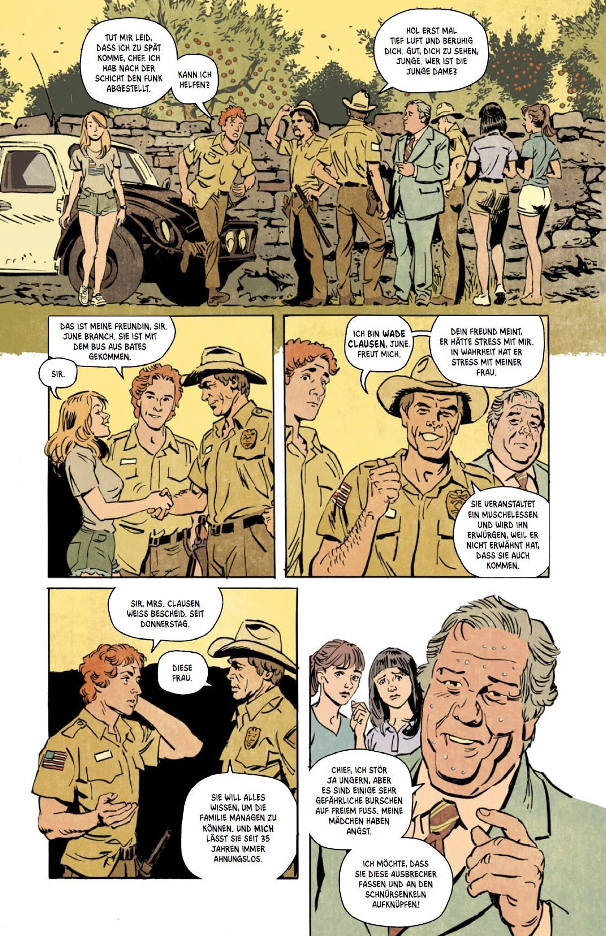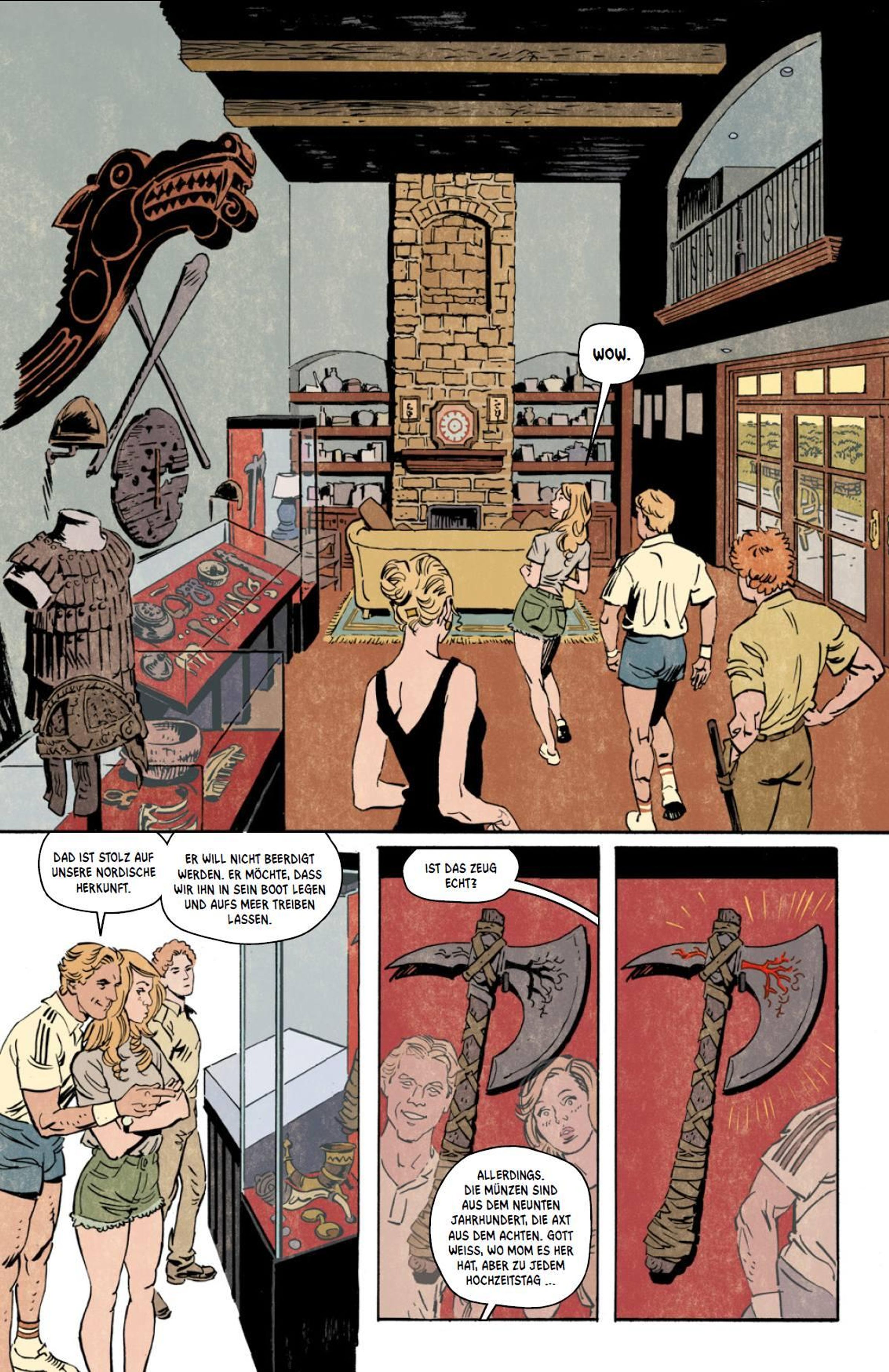 KÖPFE WERDEN ROLLEN! Brody Island, 1983: Die junge June Branch besucht ihren Freund Liam, der auf der beschaulichen Insel im US-Bundesstaat Maine einen Sommer lang für den Sheriff arbeitet. Beide verleben eine glückliche, romantische Zeit bis vier verurteilte Straftäter bei einem Gefangenentransport entkommen. Zwei von ihnen dringen ins Haus des Sheriffs ein, in dem June und Liam den Abend verbringen. Liam verschwindet spurlos, und der verzweifelten June bleibt nichts anderes übrig, als sich mit einer alten Wikinger-Axt gegen die Angreifer zur Wehr zu setzen. Und ab da rollen Köpfe!