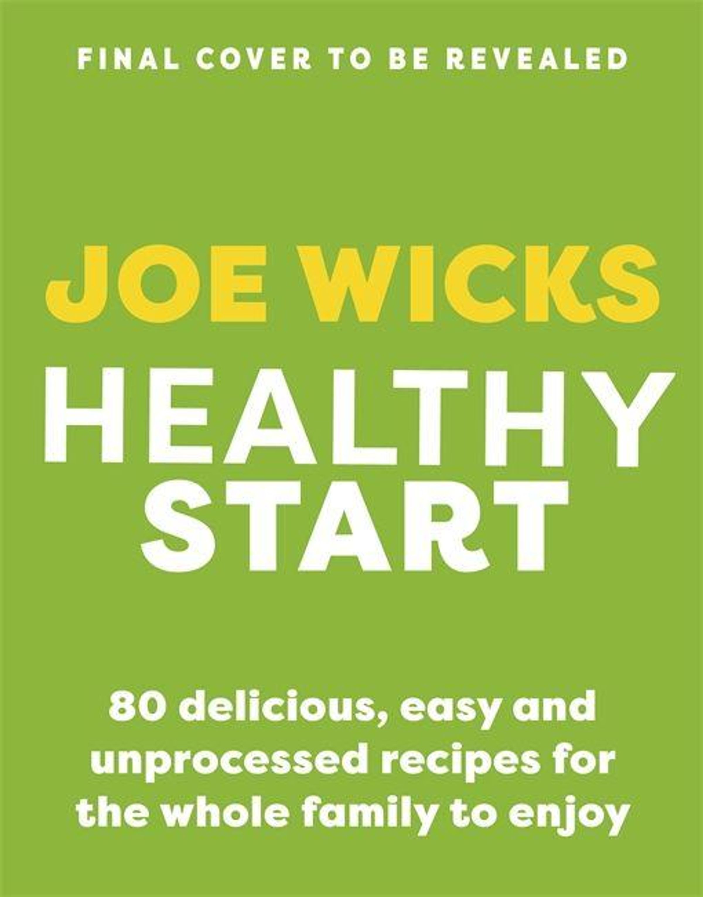 "Final Cover to Be Revealed. Joe Wicks Healthy Start. 80 delicious, easy and unprocessed recipes for the whole family."