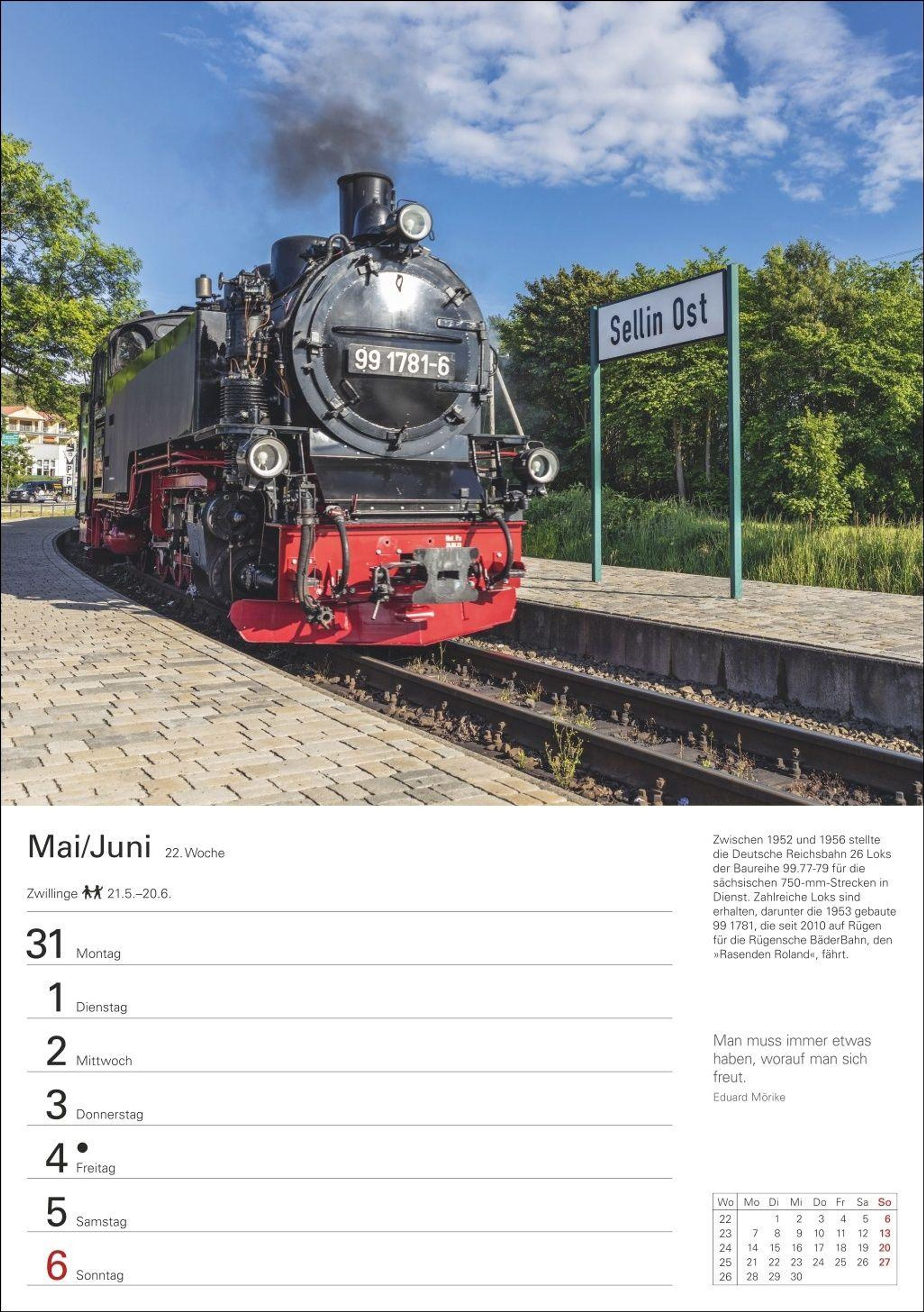 Terminkalender für die Wand mit Infotexten zu Dampflokomotiven bis hin zu modernen E-Loks, Highlights und technischen Angaben im Format 25 x 35, 5 cm