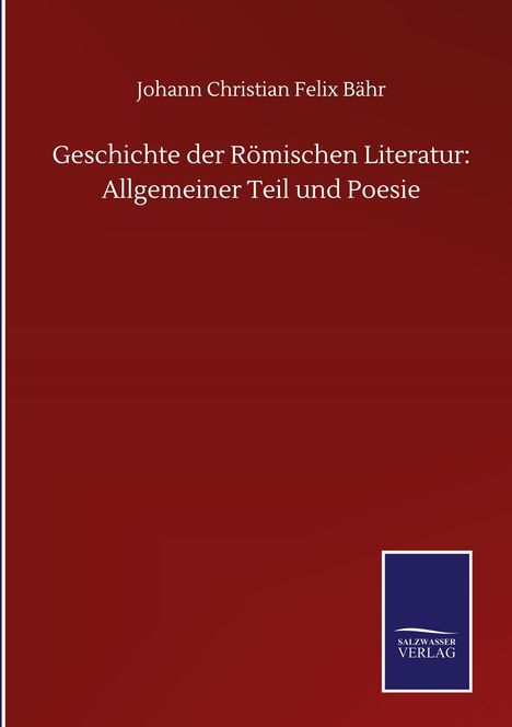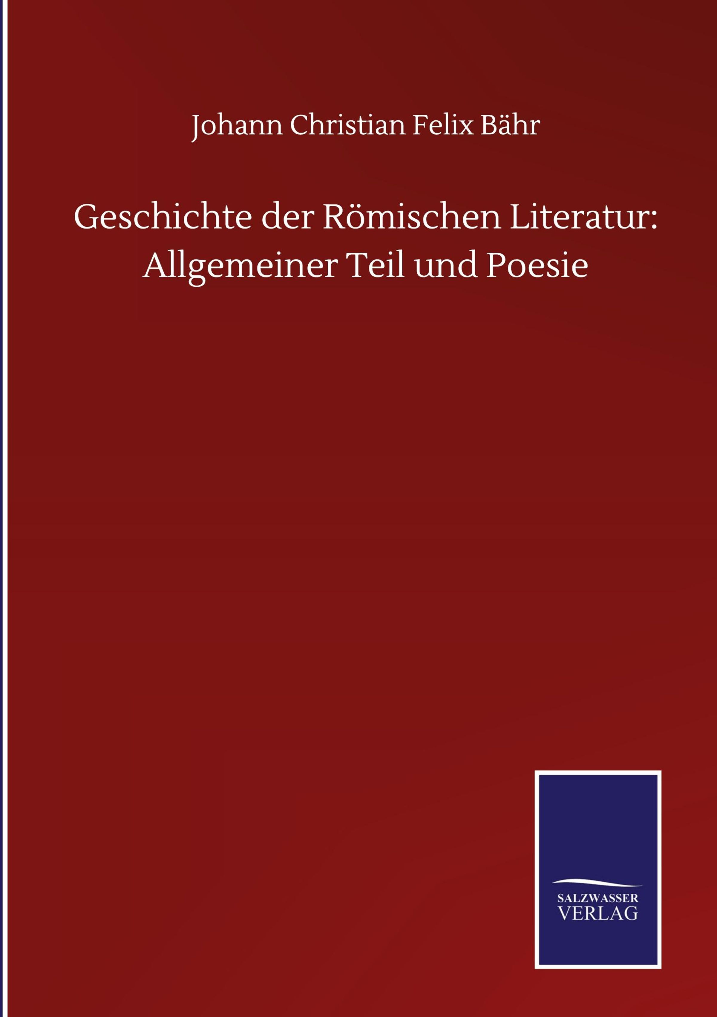 Johann Christian Felix Bähr: Geschichte der Römischen Literatur: Allgemeiner Teil und Poesie, Gebunden