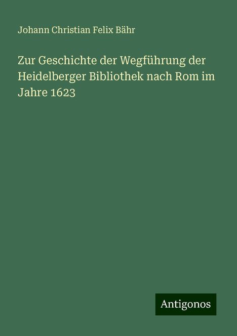 Johann Christian Felix Bähr: Bähr, J: Zur Geschichte der Wegführung der Heidelberger Bibl, Flexibler Einband