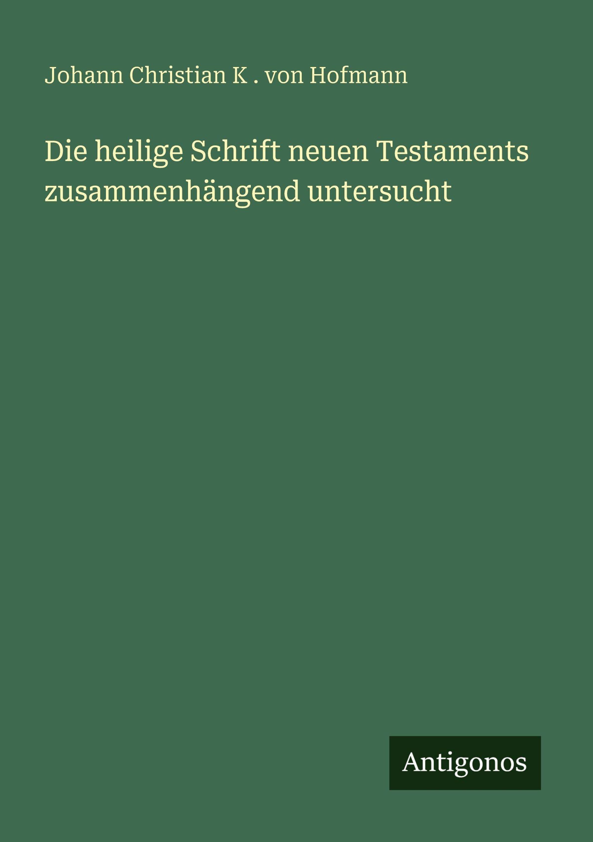 Johann Christian K . von Hofmann: Die heilige Schrift neuen Testaments zusammenhängend untersucht, Kartoniert / Broschiert