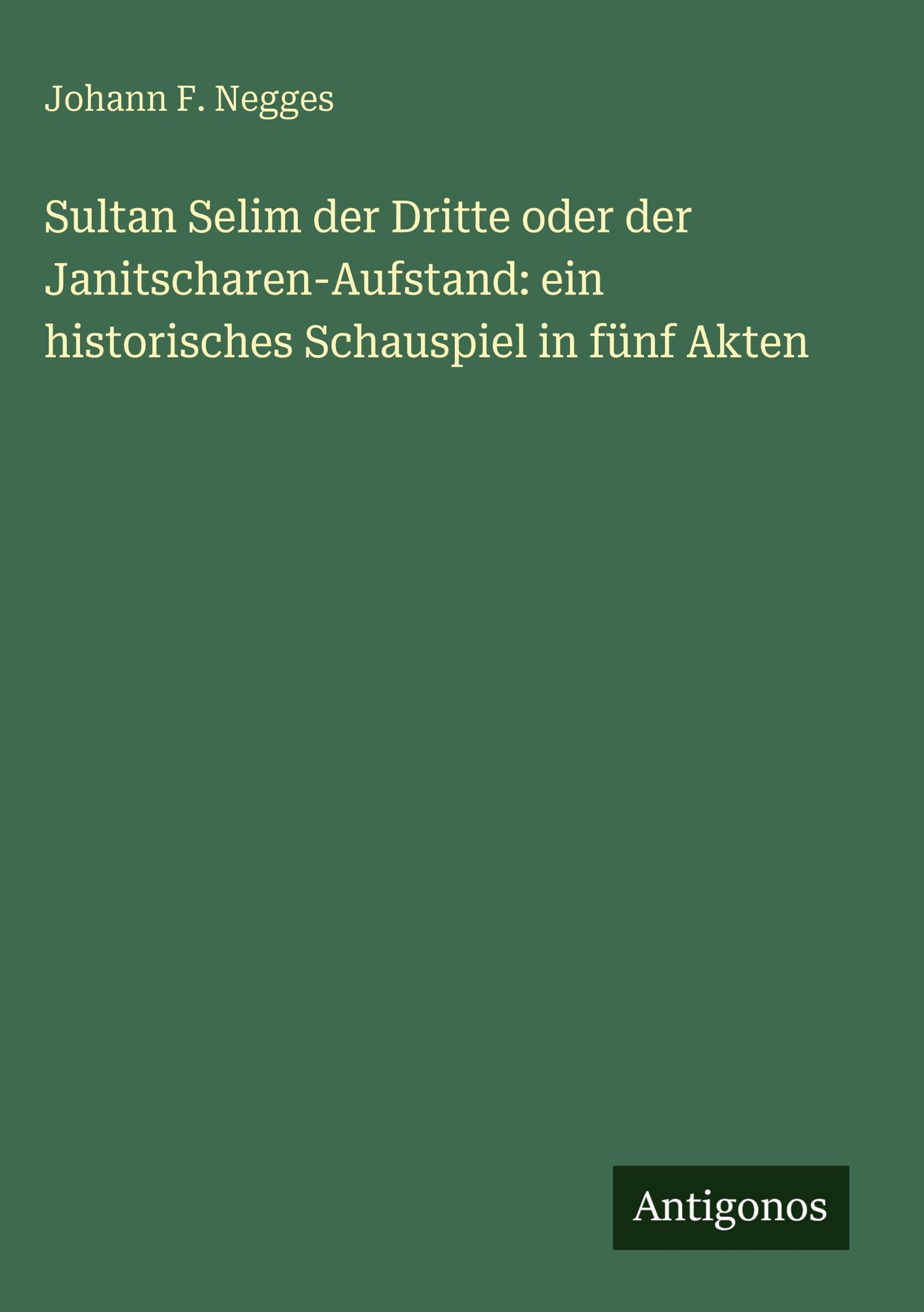 Johann F. Negges: Sultan Selim der Dritte oder der Janitscharen-Aufstand: ein historisches Schauspiel in fünf Akten, Gebunden