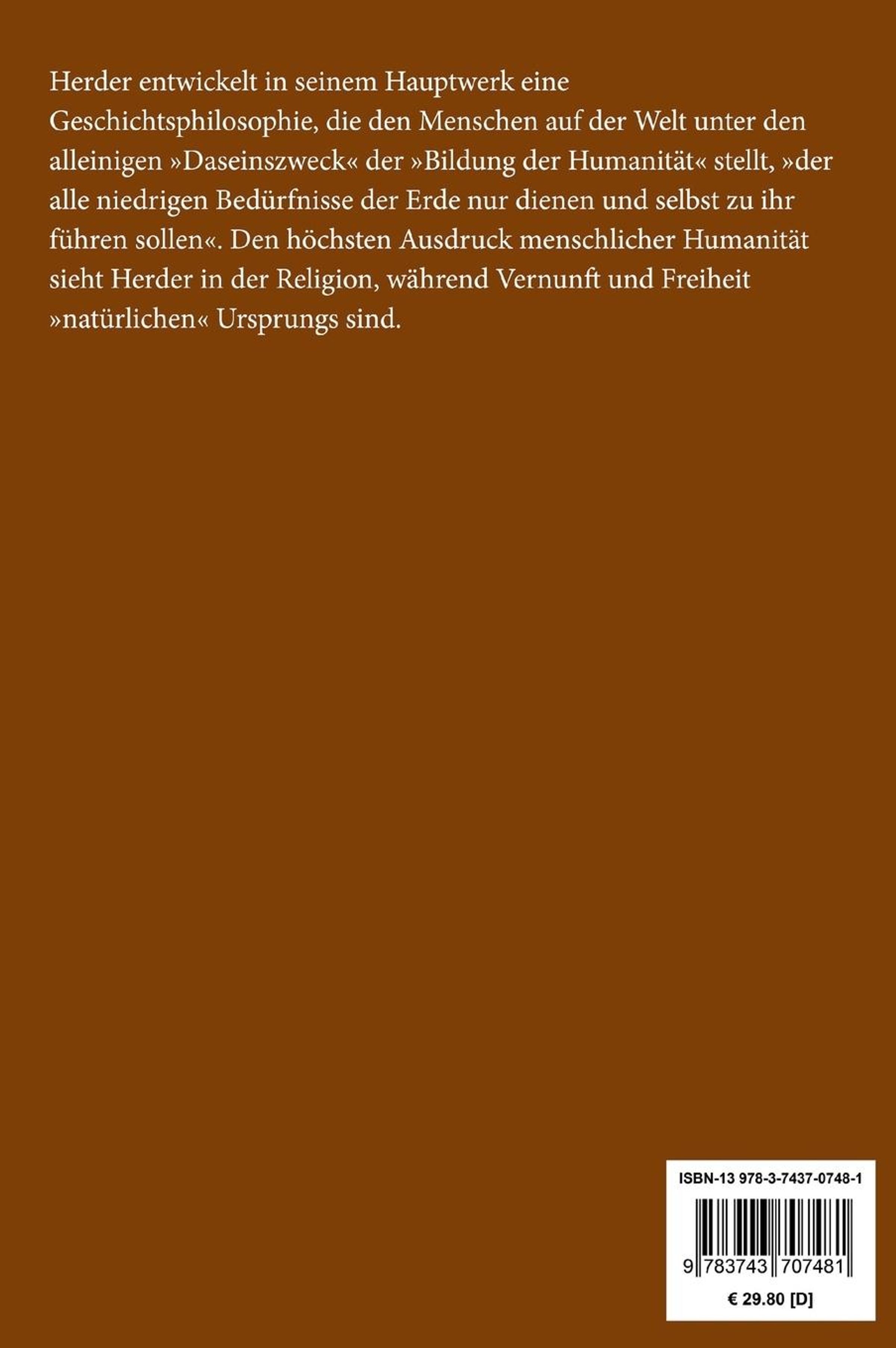 Johann Gottfried Herder: Ideen zur Philosophie der Geschichte der Menschheit, Gebunden