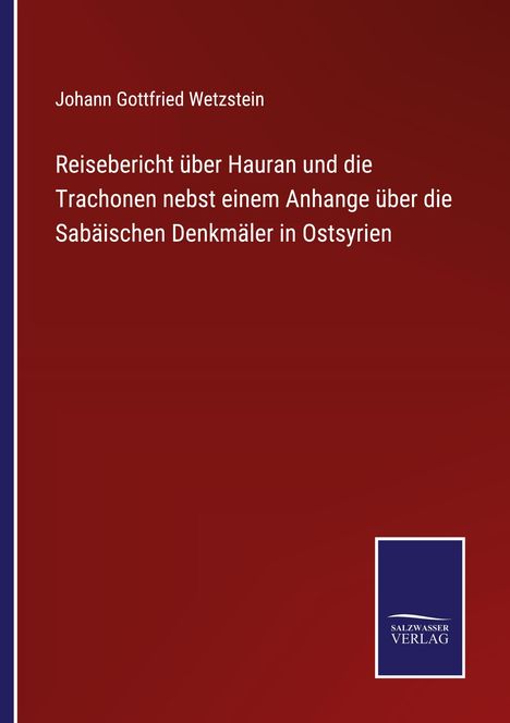 Johann Gottfried Wetzstein: Reisebericht über Hauran und die Trachonen nebst einem Anhange über die Sabäischen..., Kartoniert / Broschiert