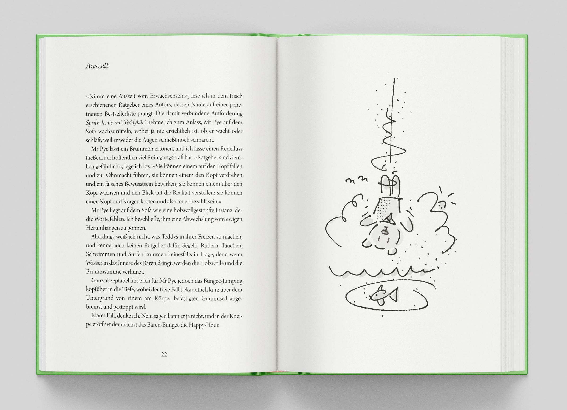 Yes! You're absolutely right: Der Held in diesem Buch ist ein ziemlich haariger Typ mit großer, wenn auch wie zugenähter Schnauze. Ein richtig knuddeliger Teddybär wie aus dem Bilderbuch. Dieser bärige Gentleman namens But no: Mr Pye wohnt nicht etwa im Kinderzimmer zwischen Dutzenden anderer Spielsachen. Er thront ganz exklusiv auf dem Sofa und lebt in einem Haushalt von höchst erwachsenen Menschen. Denn auch die sehnen sich nach Liebe und Zuwendung, erleiden schwere Krisen und sorgen sich um die Zukunft unseres Planeten. Und wer eignet sich besser für ein vertrauensvolles Selbstgespräch unter Erwachsenen? Was für eine Frage! Johann-Günther König hat die Geschichten um Mr Pye mit viel Humor und Selbstironie gespickt. Sie sind gewissermaßen als Einladung zu verstehen: Discover your inner bear!