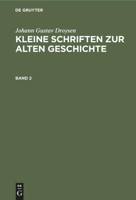 Johann Gustav Droysen: Johann Gustav Droysen: Kleine Schriften zur alten Geschichte. Band 2, Gebunden