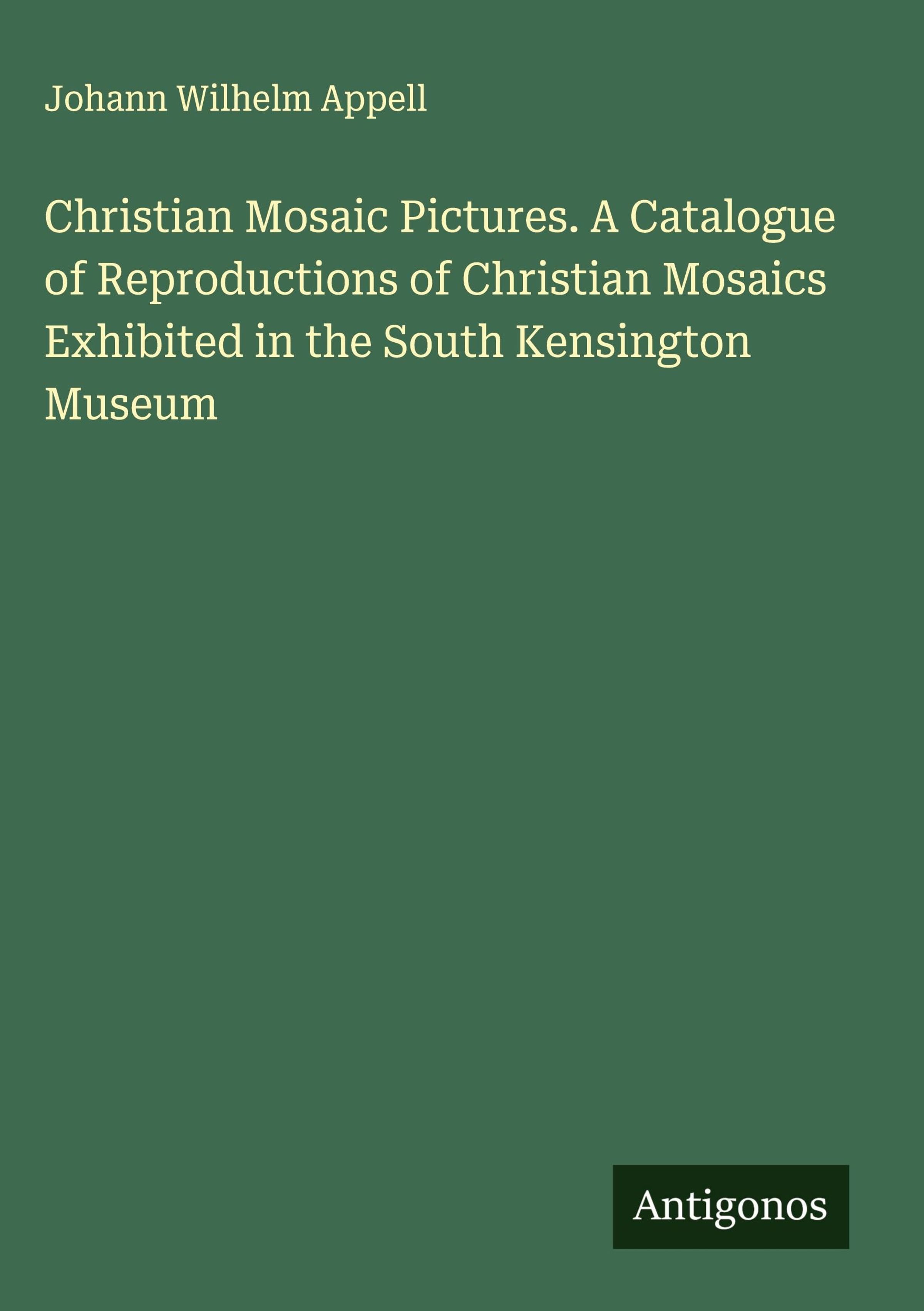 Johann Wilhelm Appell: Christian Mosaic Pictures. A Catalogue of Reproductions of Christian Mosaics Exhibited in..., Gebunden