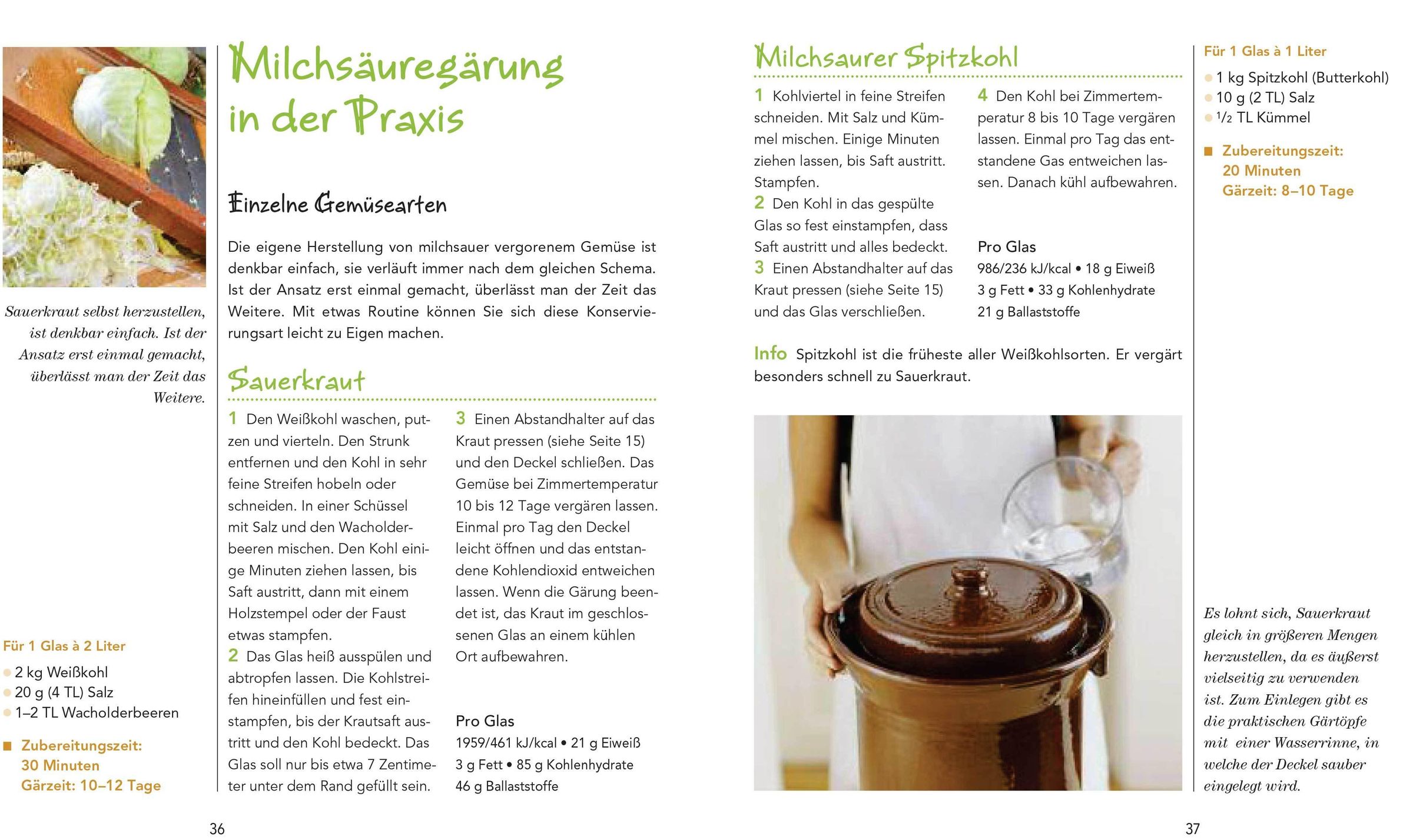 Gemüse milchsauer einzulegen, also zu fermentieren, ist eine der natürlichsten und ältesten Methoden zur Haltbarmachung und obendrein noch sehr gesund. Sauerkraut ist zwar das bekannteste durch Milchsäure konservierte Gemüse, aber es eignen sich ebenfalls viele andere Gemüsesorten wie Kohl, Zucchini, Gurken, Bohnen, Paprika oder Zwiebeln. Der große Vorteil dieser Art von Haltbarmachens: Vitamine und Enzyme bleiben weitgehend erhalten und zusätzlich sorgen die milchsauren Gemüse für einen gesünderen Darm und damit für ein stärkeres Immunsystem. Auch für Menschen mit Laktoseintoleranz sind milchsaure Gemüse eine gute und leckere Alternative.