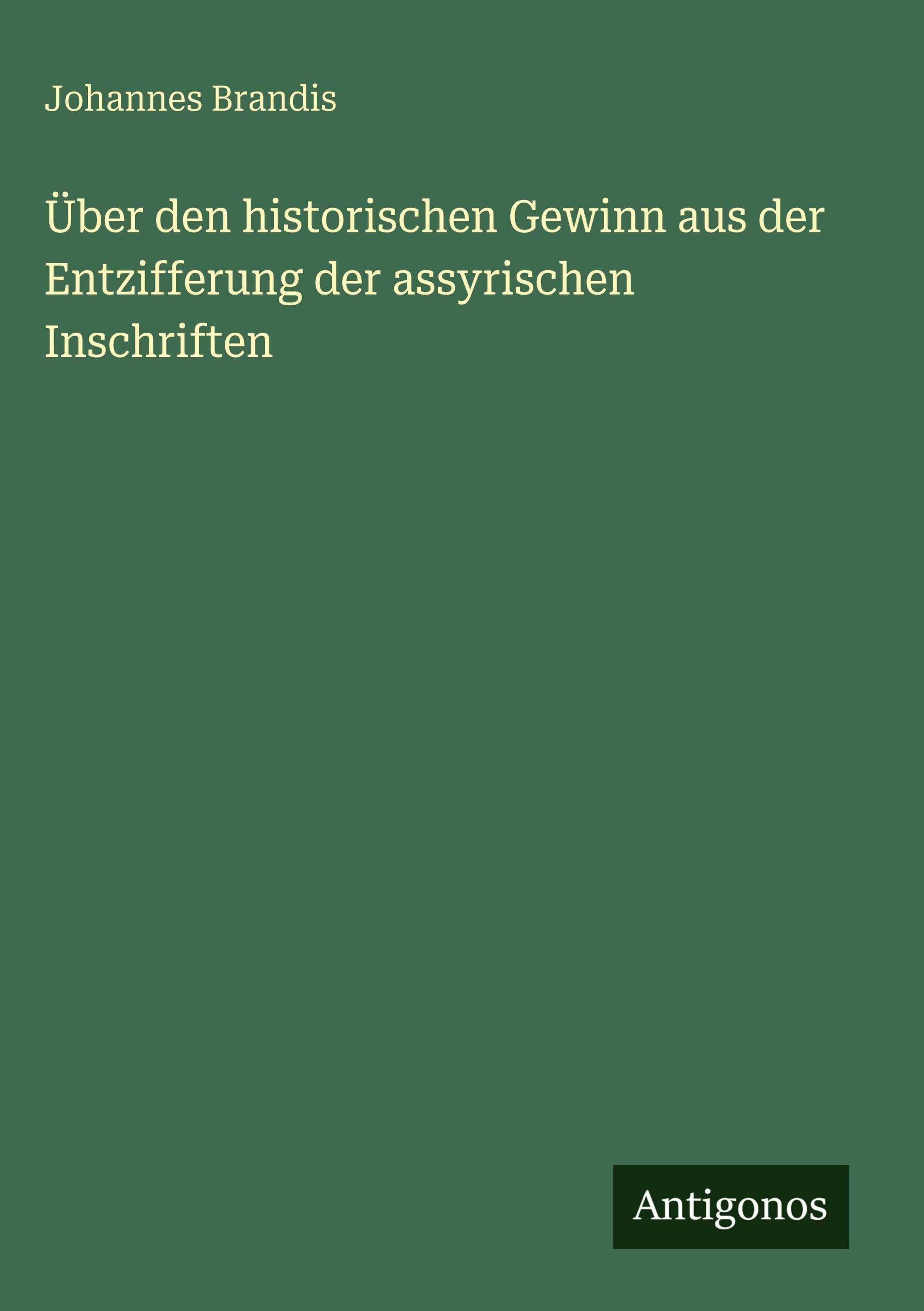 Johannes Brandis: Über den historischen Gewinn aus der Entzifferung der assyrischen Inschriften, Gebunden