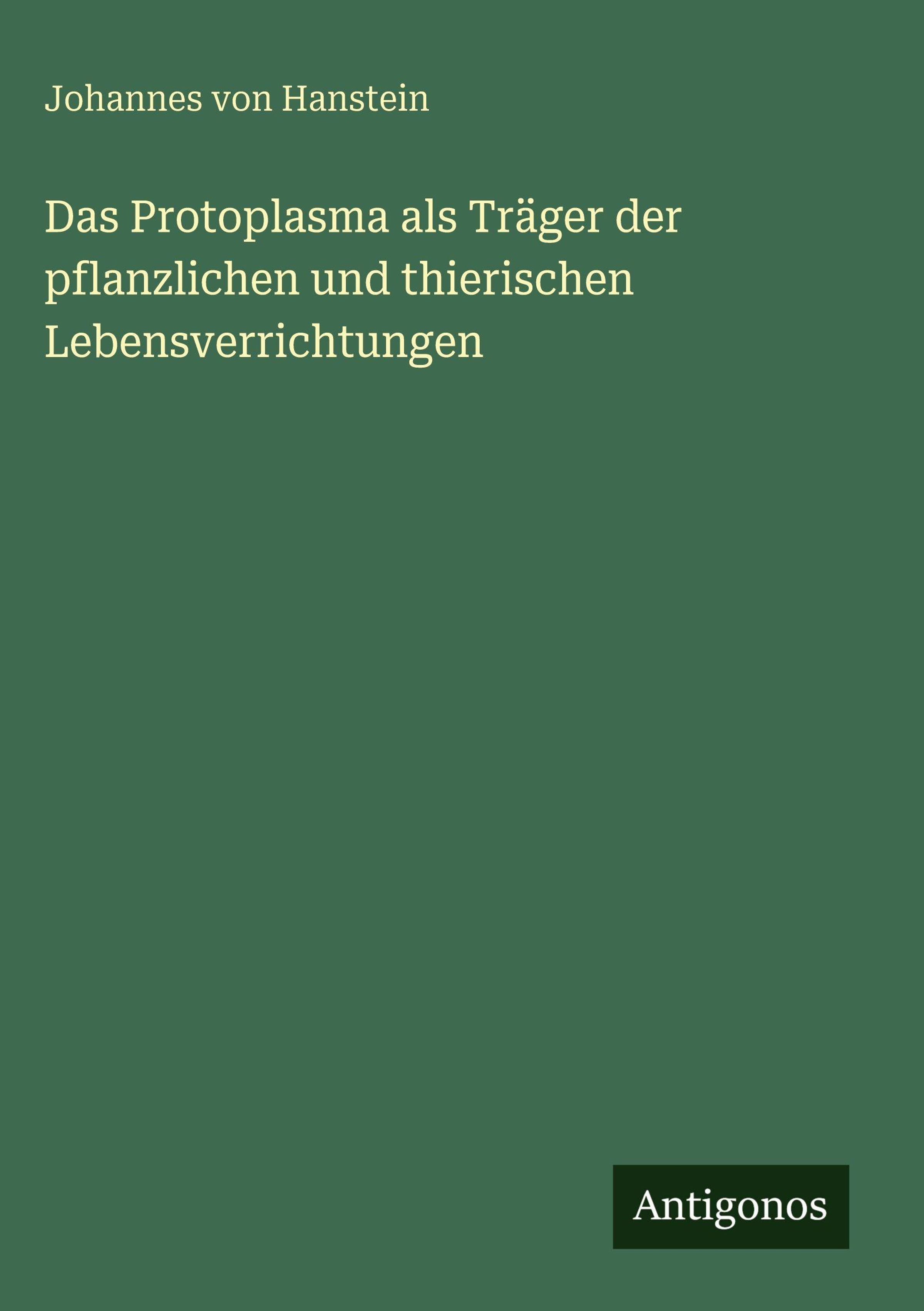 Der Artikel Johannes Von Hanstein: Das Protoplasma als Träger der pflanzlichen und thierischen Lebensverrichtungen wurde in den Warenkorb gelegt.