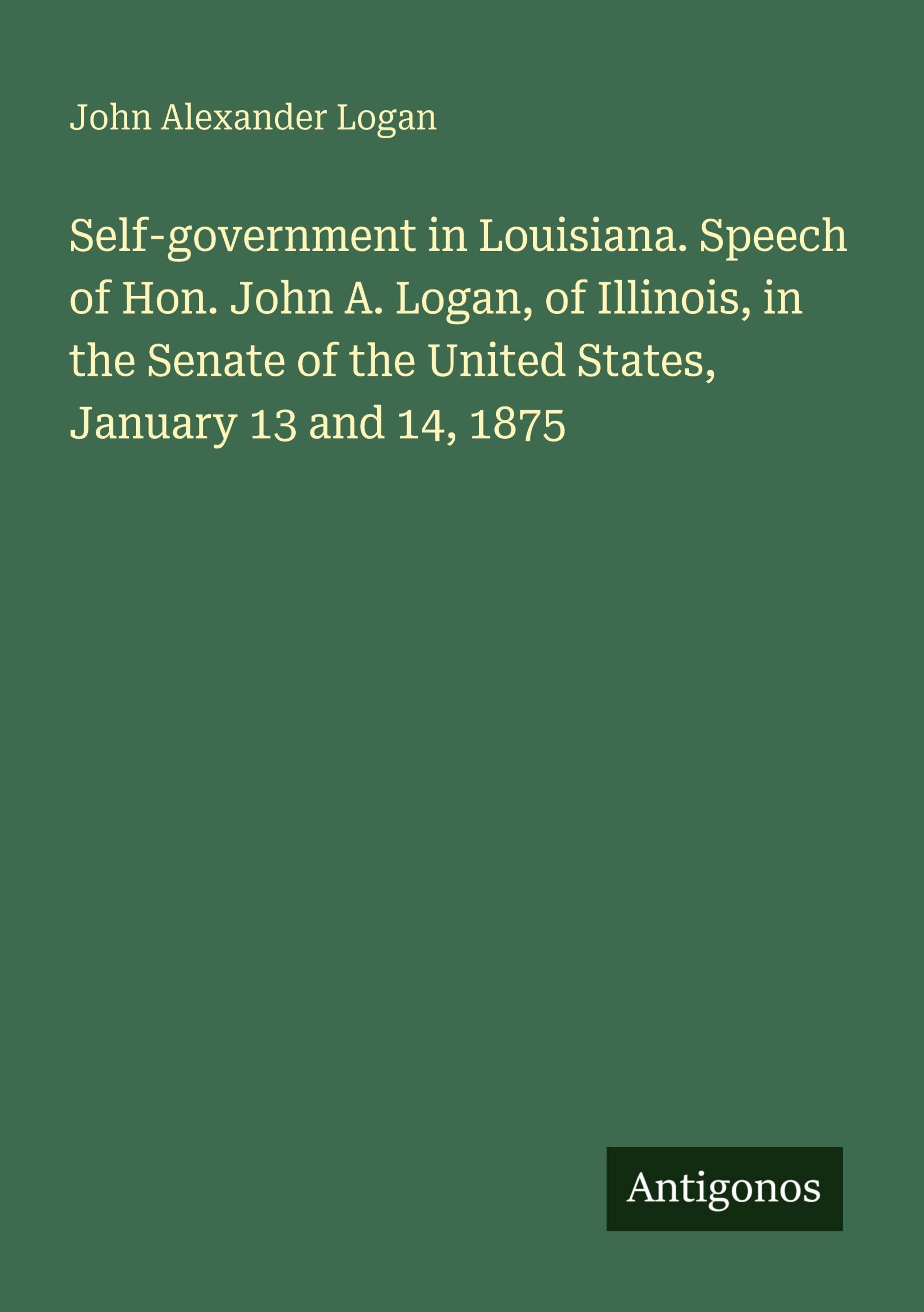 Self-government in Louisiana. Speech of Hon. John A. Logan, of Illinois, in the Senate of the United States, January 13 and 14, 1875