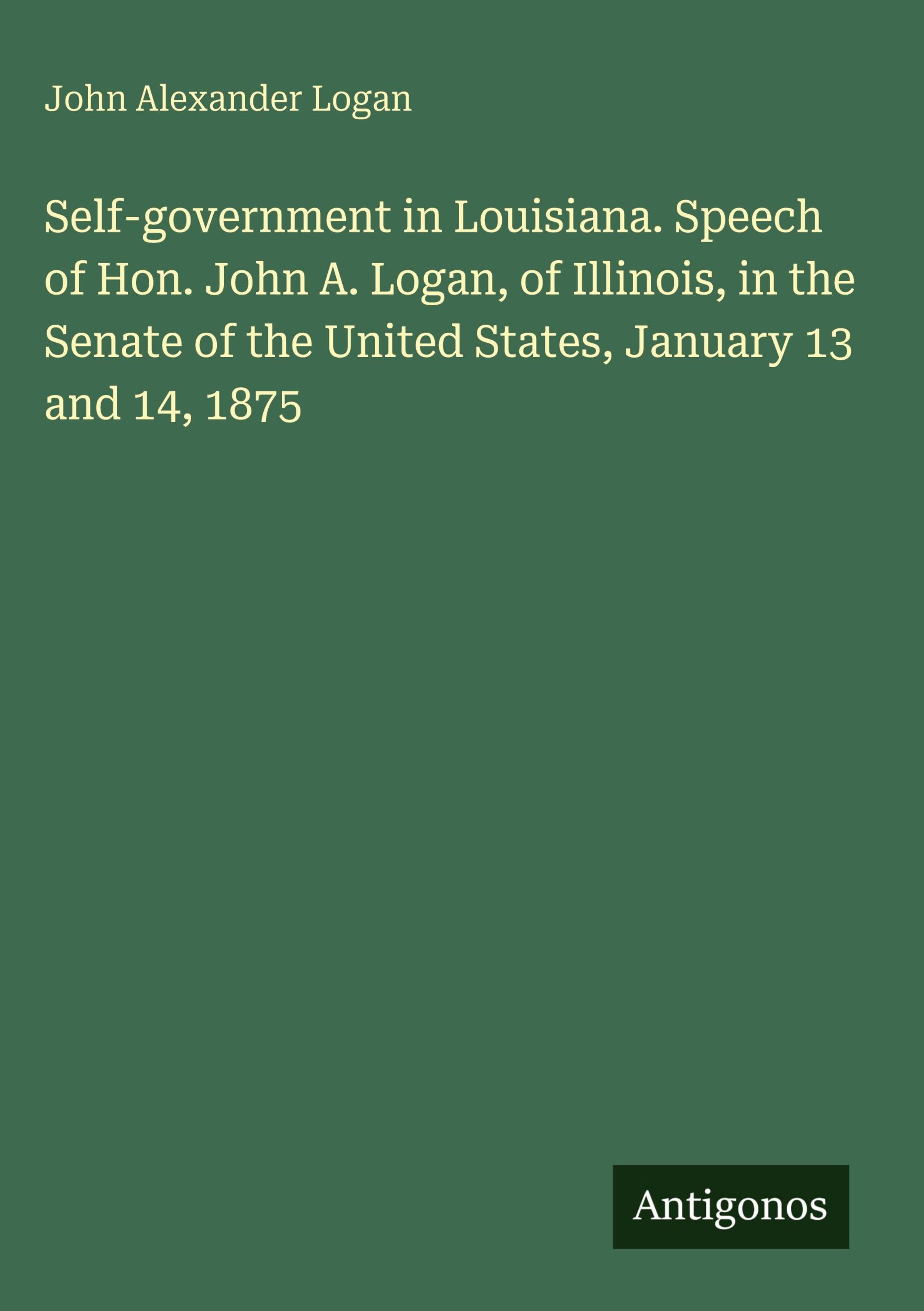 John Alexander Logan: Self-government in Louisiana. Speech of Hon. John A. Logan, of Illinois, in the Senate of..., Gebunden