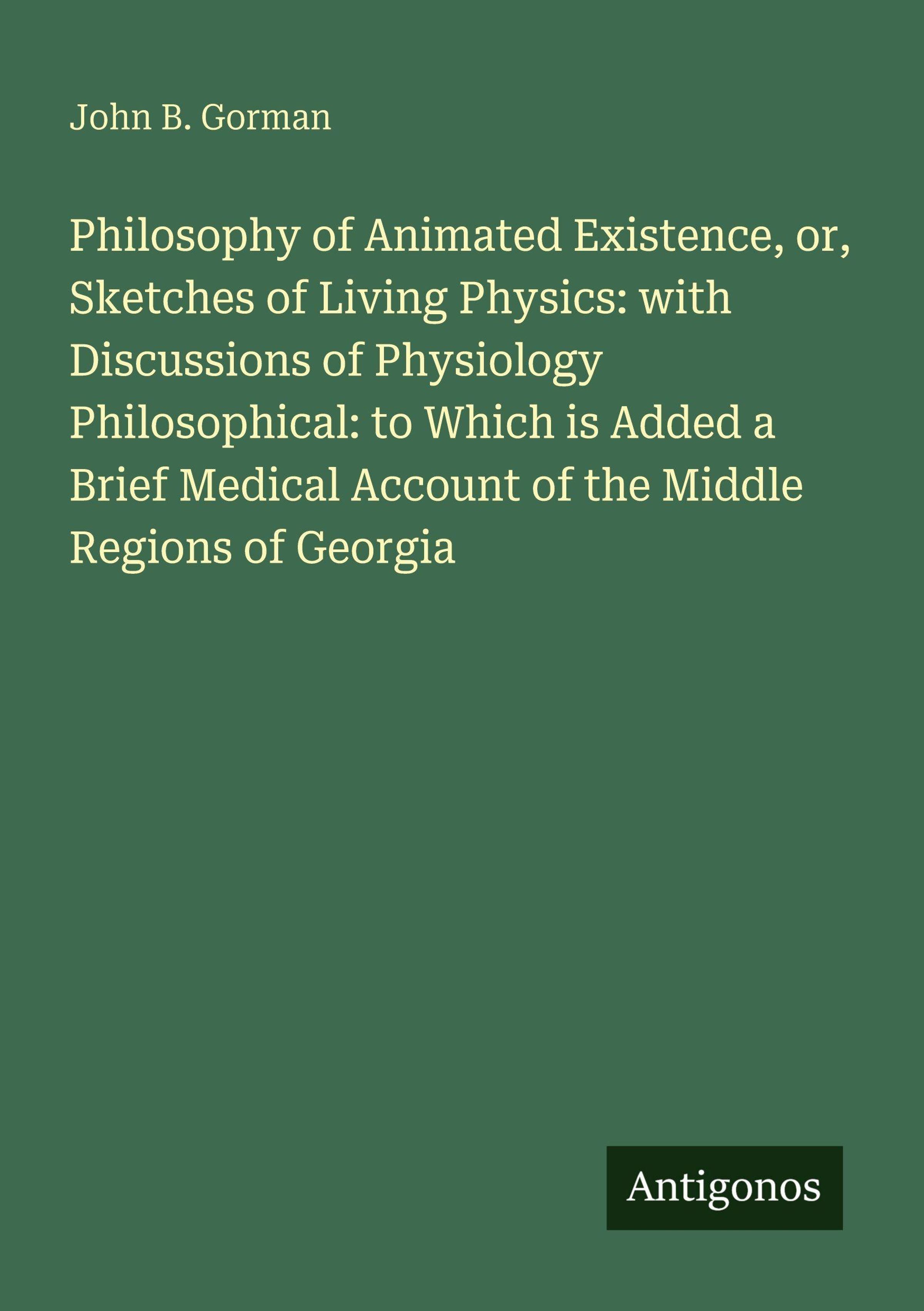 Philosophy of Animated Existence, or, Sketches of Living Physics: with Discussions of Physiology Philosophical: to Which is Added a Brief Medical Account of the Middle Regions of Georgia