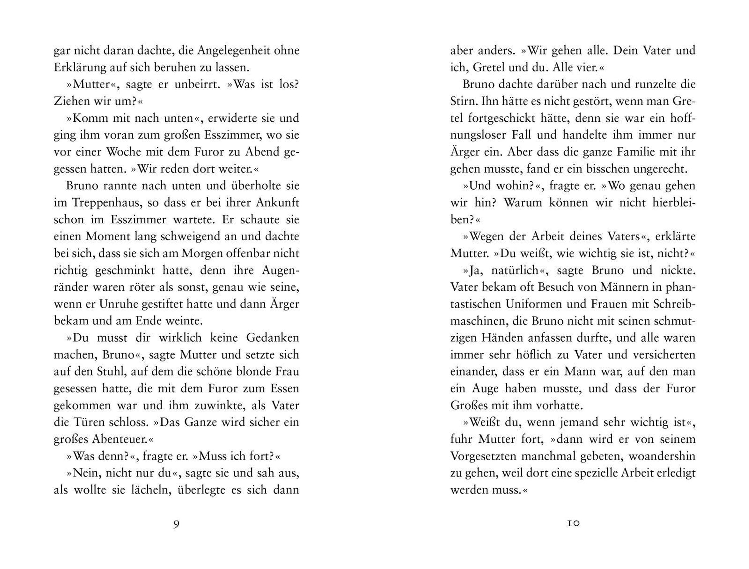 Die Geschichte von >>Der Junge im gestreiften Pyjama<< ist schwer zu beschreiben. Normalerweise geben wir an dieser Stelle ein paar Hinweise auf den Inhalt, aber bei diesem Buch - so glauben wir - ist es besser, wenn man vorher nicht weiß, worum es geht. Wer zu lesen beginnt, begibt sich auf eine Reise mit einem neunjährigen Jungen namens Bruno. (Und doch ist es kein Buch für Neunjährige.) Früher oder später kommt er mit Bruno an einen Zaun. Zäune wie dieser existieren auf der ganzen Welt.