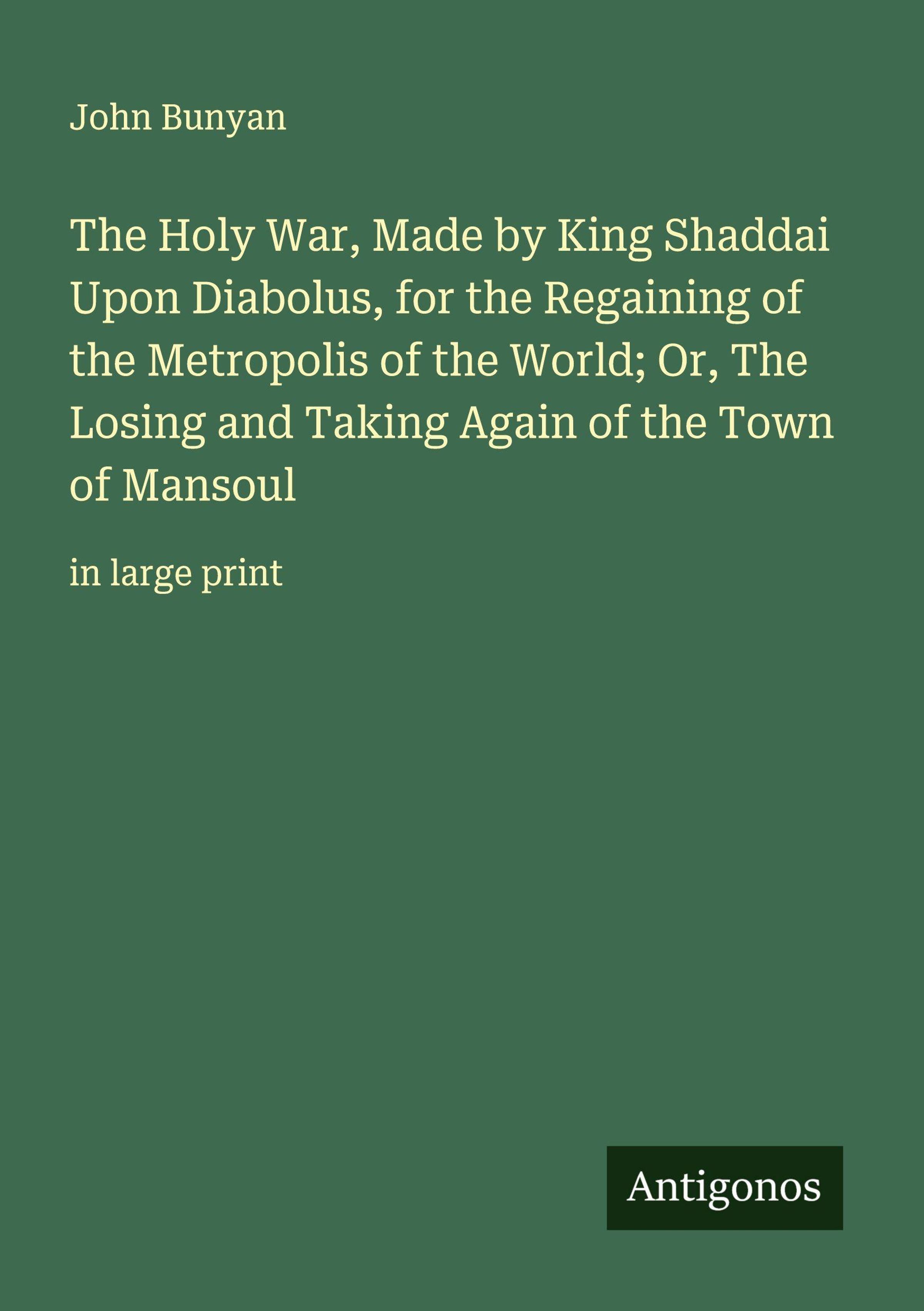 The Holy War, Made by King Shaddai Upon Diabolus, for the Regaining of the Metropolis of the World; Or, The Losing and Taking Again of the Town of Mansoul