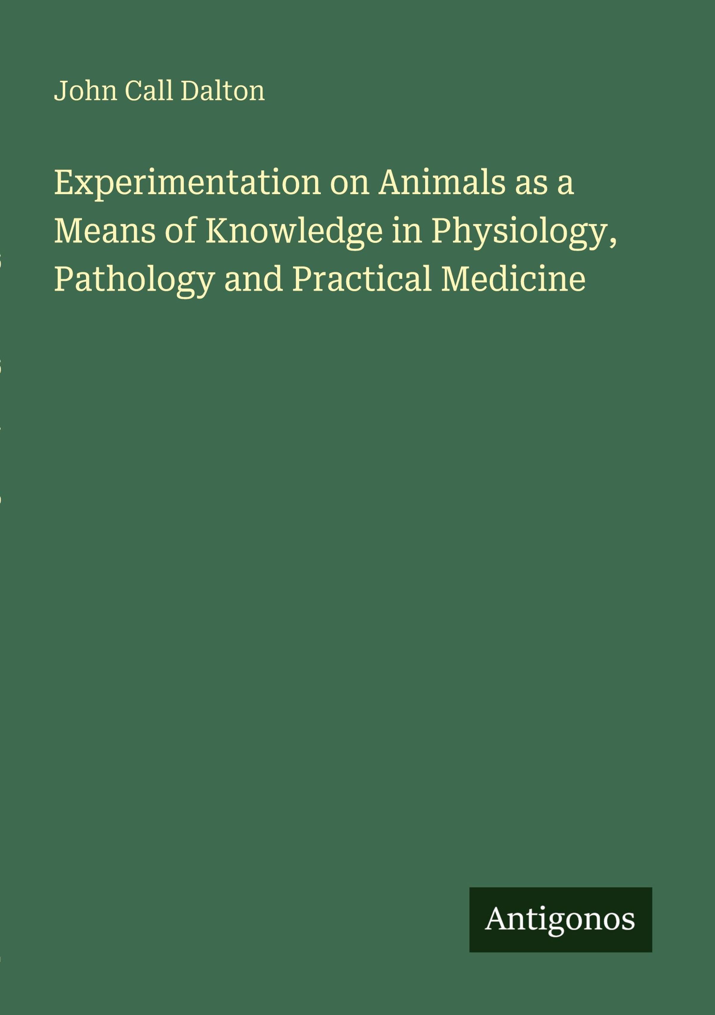 John Call Dalton: Experimentation on Animals as a Means of Knowledge in Physiology, Pathology and Practical..., Kartoniert / Broschiert