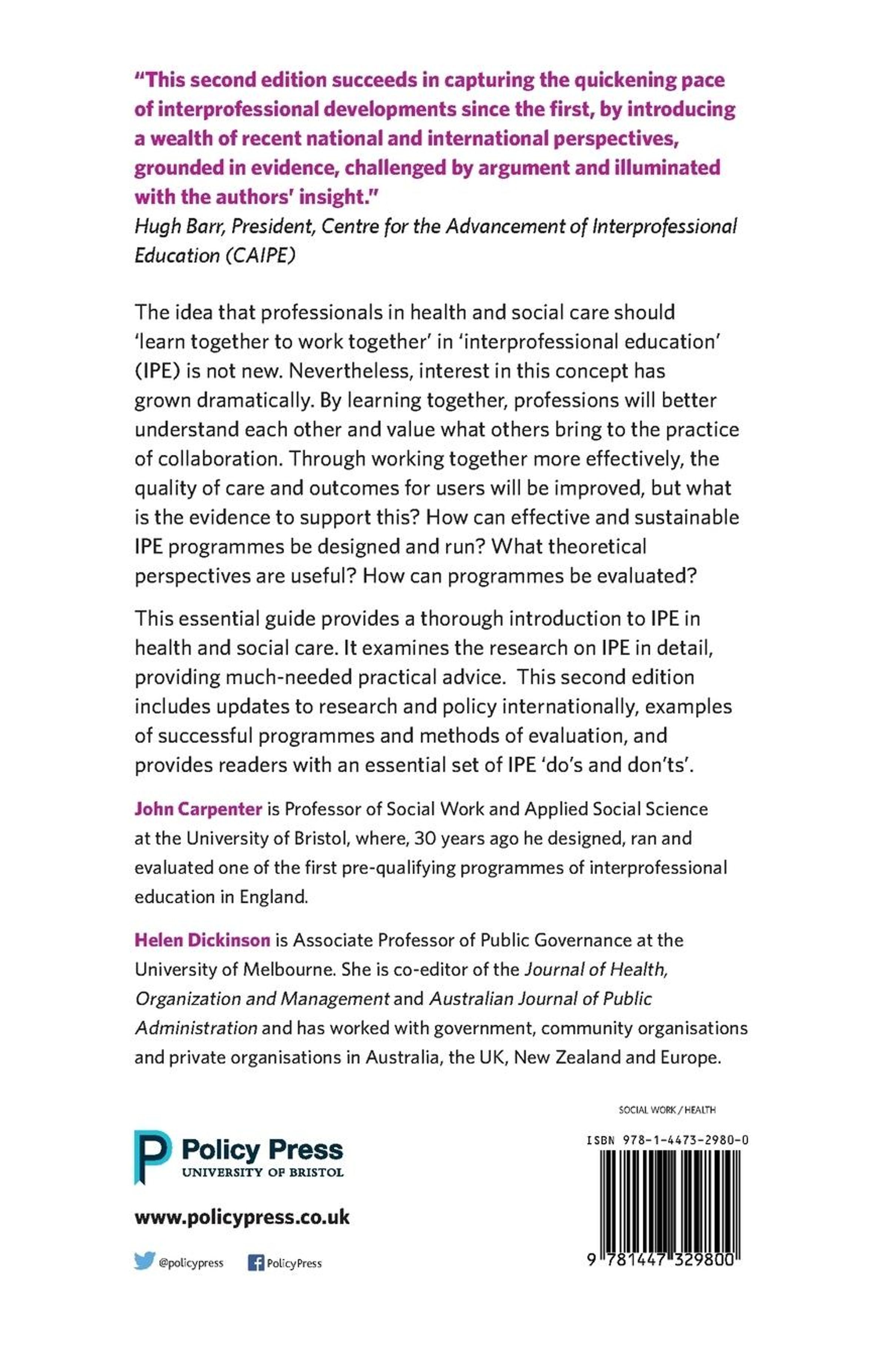 A thorough introduction to IPE in health and social care for students. This second edition includes updates to research and policy contexts and provides an essential set of IPE â¿¿do's and don'ts'.